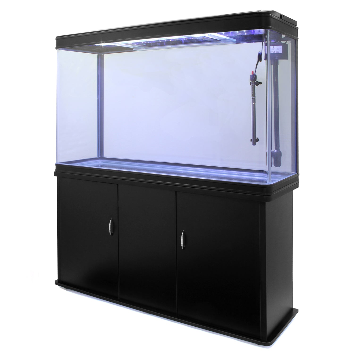 Med måtten 120,5 cm x 39 cm x 143,5 cm (H x D x B) kan detta mångsidiga akvarium hysa färskvatten-, tropiska eller marina fiskar tack vare dess praktiska inbyggda filter, en luftpump och en avtagbar 300W värmare: alla väsentligheter när du monterar ditt akvarium. Utseendet fulländas med underbar LED-belysning i locket på tanken. Två LED-lampor ingår monterade och är justerbara för att passa din önskade belysning. Locket förser enkel åtkomst när du rengör ditt akvarium eller matar dina fiskar. Locket har också utrymme för slangar och kablar om det behövs.