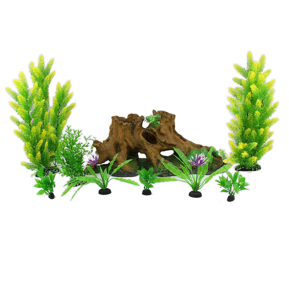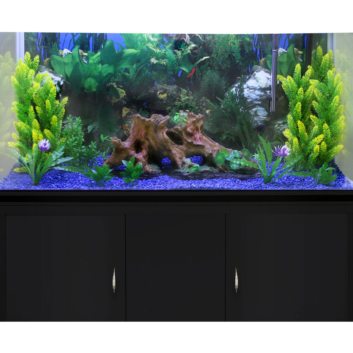 Din tank kompletteras vackert med ett komplett startpaket inklusive en enorm 25 kg påse småsten och en stor träddekoration, prydd med konstgjorda växter. Dessa går hand i hand med fyra ytterligare separata växter och en 150cm x 75cm omvändbar plastbakgrund som ger dig valet av en sten- eller en undervattensscen.