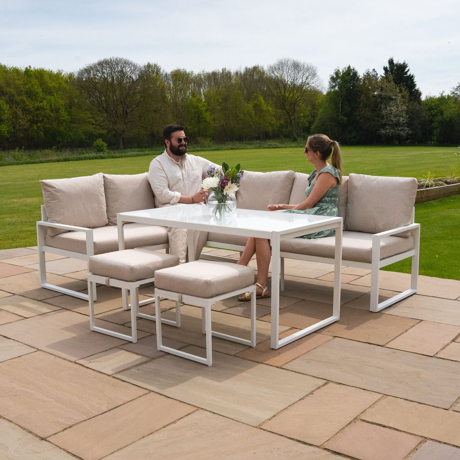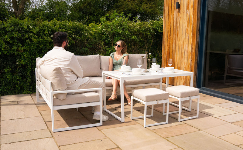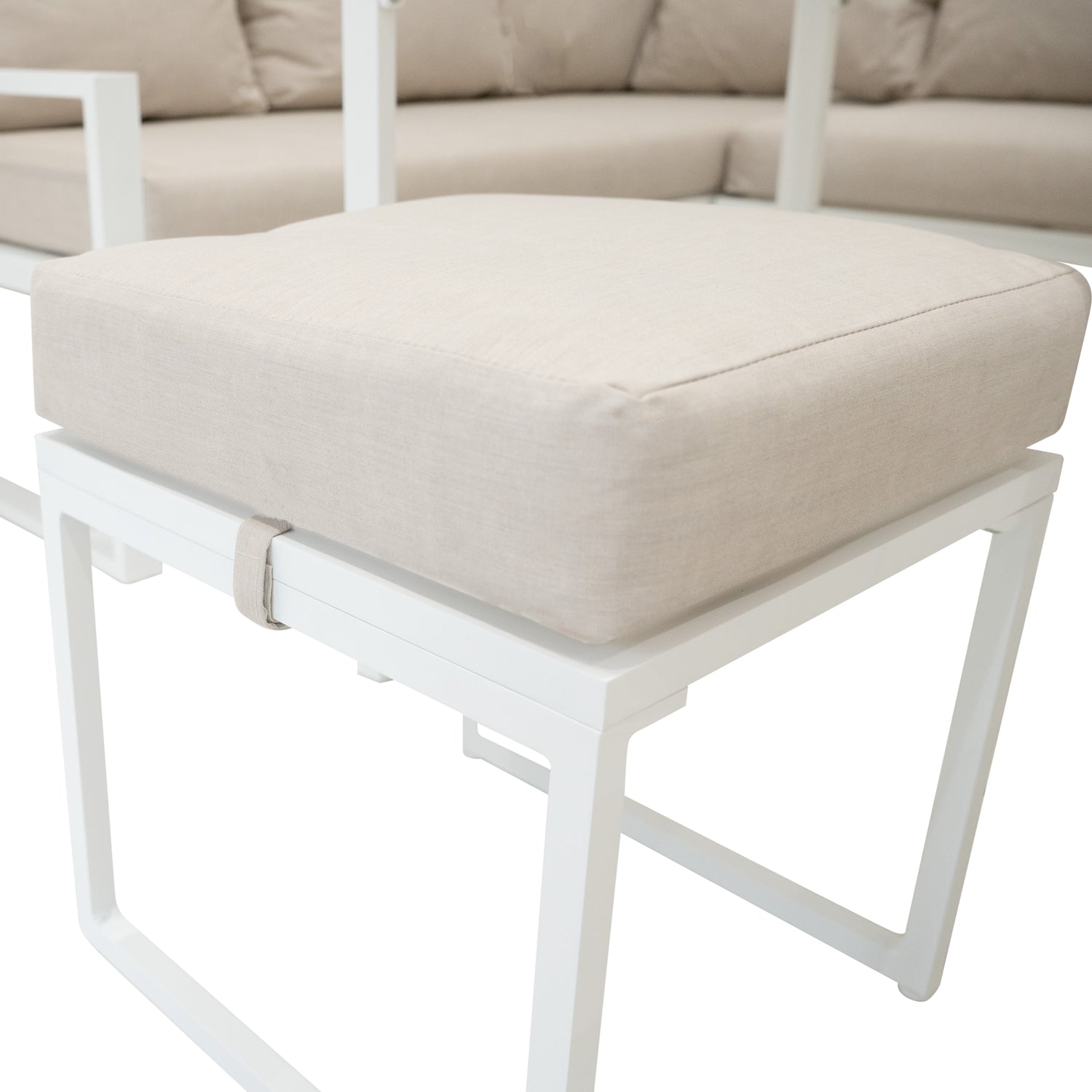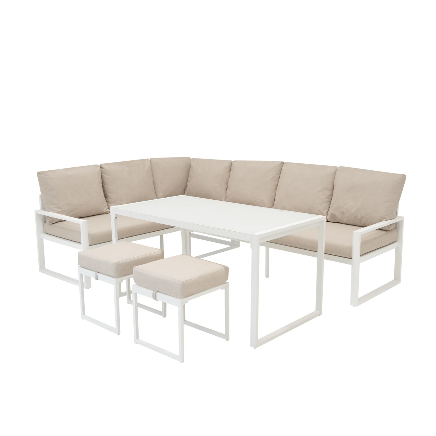 Förvandla din uteplats med denna eleganta hörnsoffa i aluminium med en modern vit finish.