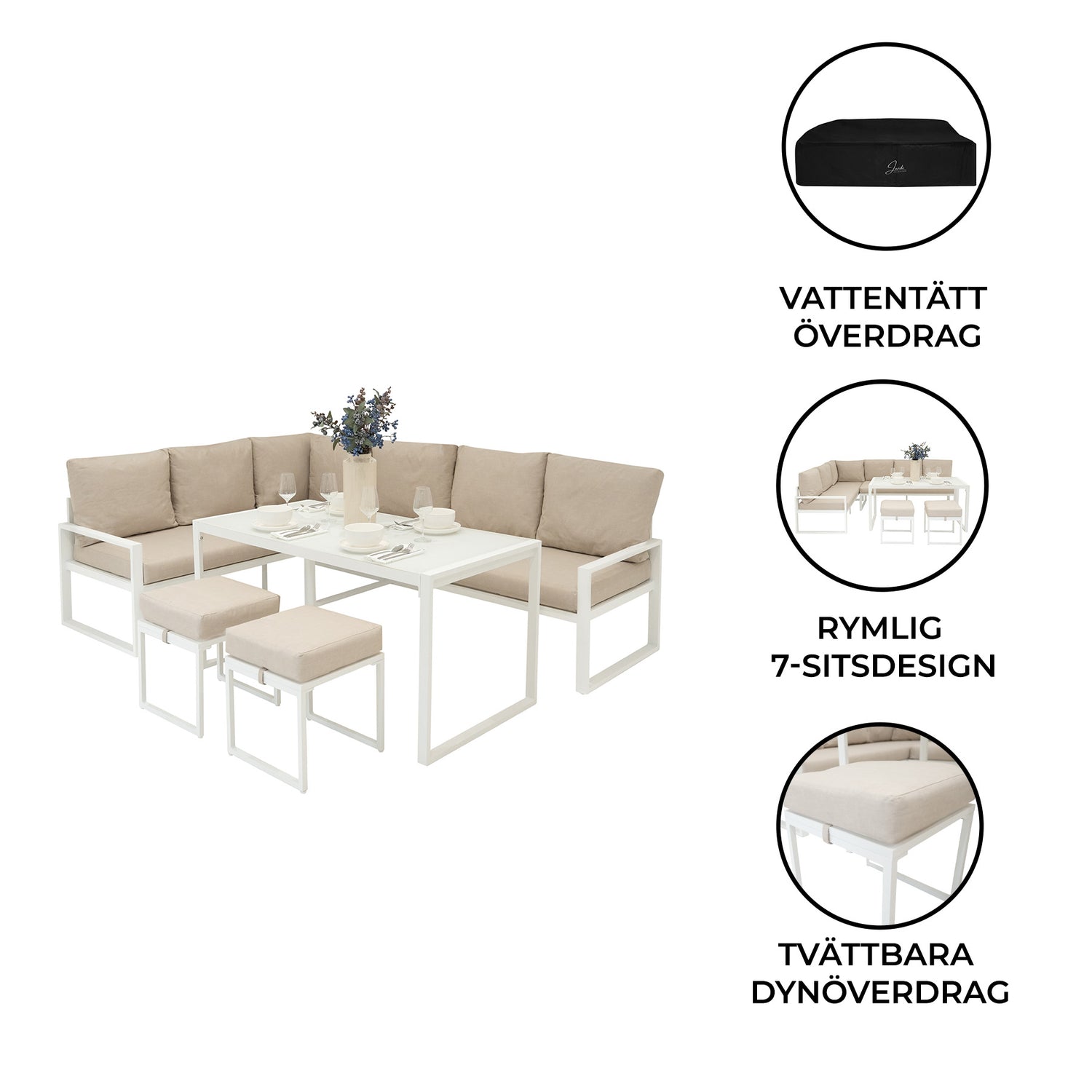 Aluminium Hörnsoffa för utomhusbruk 7-sits - Vit är restnoterad och kommer att skickas så snart den finns i lager igen.