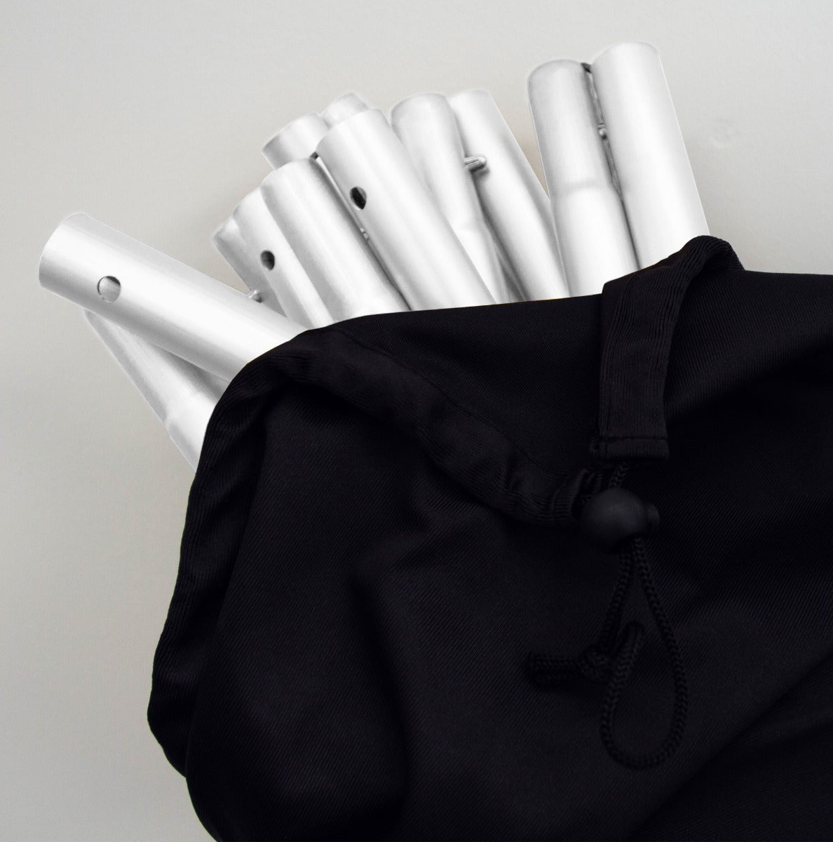 Bröllopsbågen är tillverkad av hållbar aluminiumoxid och har en fantastisk vit finish som är beständig mot repor. Den monteras snabbt och enkelt med en elastisk lina och en robust låsstiftsstruktur, du kan spara på din dyrbara tid och montera den på bara några ögonblick. Cirkeln delas upp i 10 lika delar, och med en gratis bärväska med dragsko gör det den superenkel att transportera och förvara.