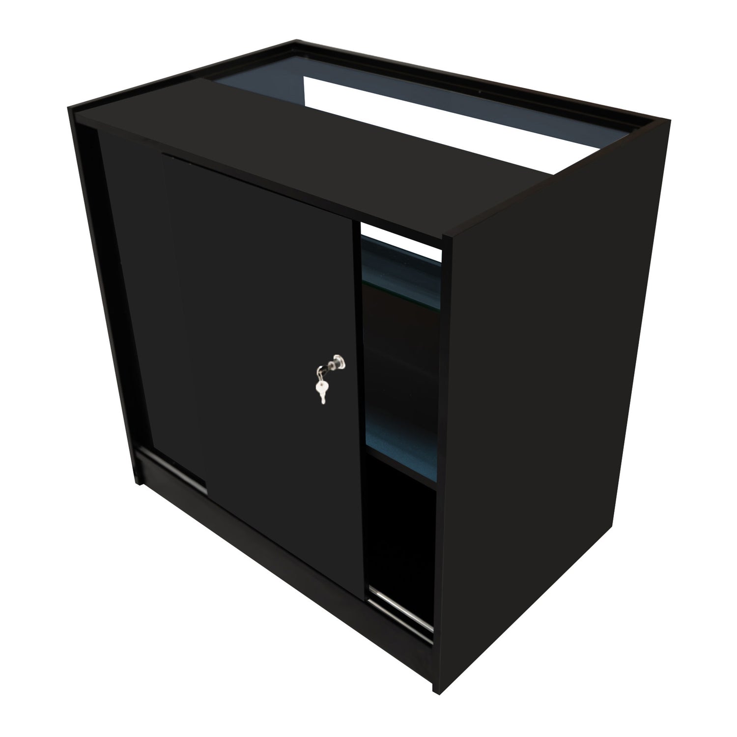 Med tre helt slutna exponeringshyllor bakom en front av härdat glas, skapar K900/K1200/K1500 en perfekt balans mellan produktvisning och säker förvaring. De låsbara skjutdörrarna på baksidan ger diskret åtkomst och bidrar till ett rent och professionellt intryck från kundens perspektiv.