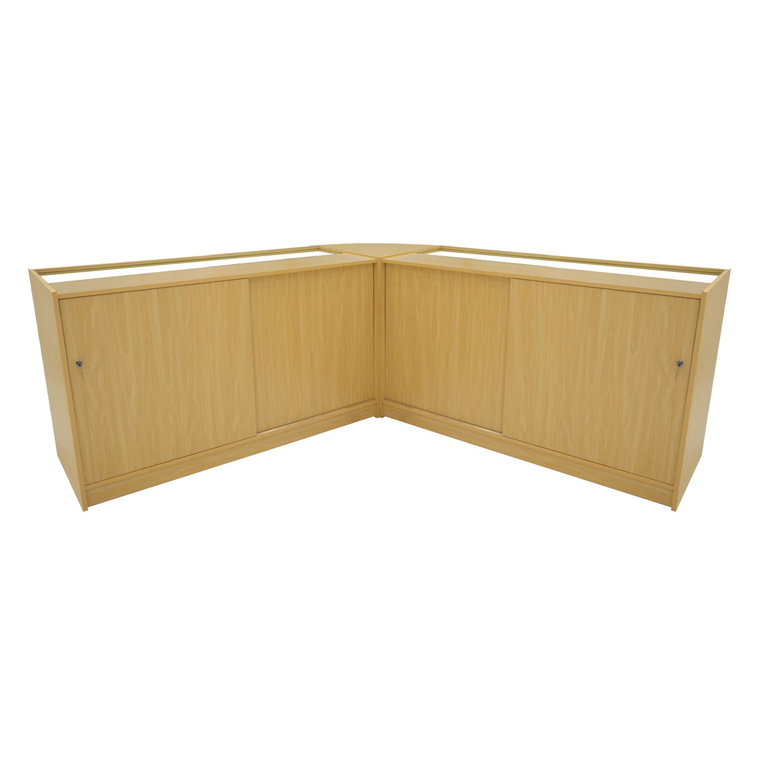 Det kurvade hörndisken CM60 erbjuder platsbesparande funktionalitet och bidrar till ett smidigt butikslayout. Med sin kompakta och rundade design passar den perfekt i hörn eller som länk mellan raka diskar, vilket skapar ett enhetligt och modulärt system. CM60 har en slät, stängd framsida som ger ett stilrent intryck, medan två dolda innerhyllor på baksidan erbjuder praktisk förvaring för lager eller tillbehör. Dessa hyllor är endast åtkomliga när enheten inte är placerad mellan andra diskar, vilket gör CM60 till en diskret och smart förvaringslösning som optimerar hörnutrymmen utan att kompromissa med estetik.