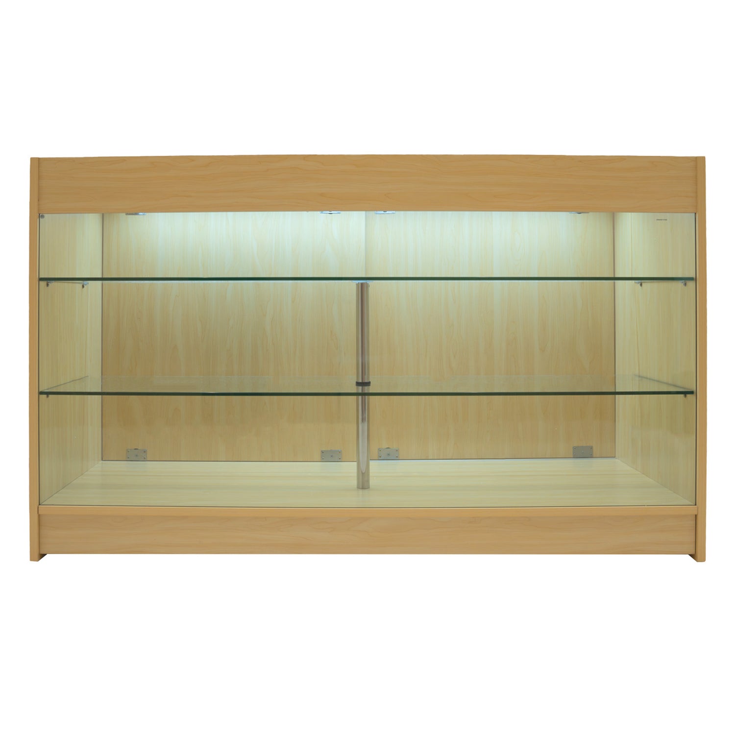 Med en exponeringshylla synlig genom den främre glasrutan och två hyllor dolda från kundens synfält, balanserar dessa diskar perfekt mellan säker förvaring och effektiv presentation. De bakre skjutdörrarna med lås håller lagret säkert samtidigt som disken bibehåller ett rent och professionellt intryck utåt.