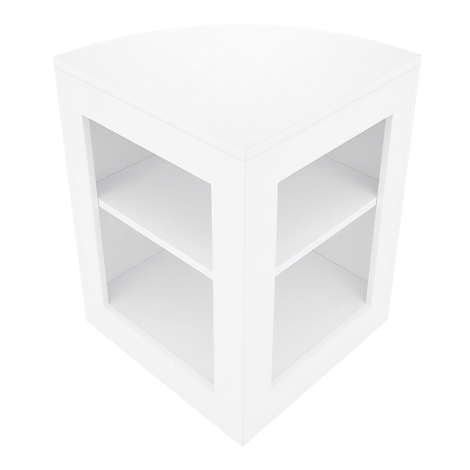 Det kurvade hörndisken CM60 erbjuder platsbesparande funktionalitet och bidrar till ett smidigt butikslayout. Med sin kompakta och rundade design passar den perfekt i hörn eller som länk mellan raka diskar, vilket skapar ett enhetligt och modulärt system. CM60 har en slät, stängd framsida som ger ett stilrent intryck, medan två dolda innerhyllor på baksidan erbjuder praktisk förvaring för lager eller tillbehör. Dessa hyllor är endast åtkomliga när enheten inte är placerad mellan andra diskar, vilket gör CM60 till en diskret och smart förvaringslösning som optimerar hörnutrymmen utan att kompromissa med estetik.