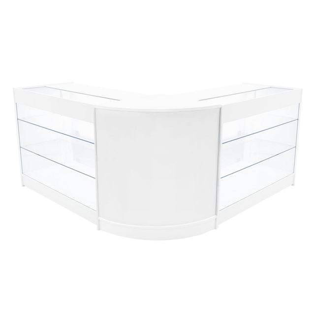 Det kurvade hörndisken CM60 erbjuder platsbesparande funktionalitet och bidrar till ett smidigt butikslayout. Med sin kompakta och rundade design passar den perfekt i hörn eller som länk mellan raka diskar, vilket skapar ett enhetligt och modulärt system. CM60 har en slät, stängd framsida som ger ett stilrent intryck, medan två dolda innerhyllor på baksidan erbjuder praktisk förvaring för lager eller tillbehör. Dessa hyllor är endast åtkomliga när enheten inte är placerad mellan andra diskar, vilket gör CM60 till en diskret och smart förvaringslösning som optimerar hörnutrymmen utan att kompromissa med estetik.