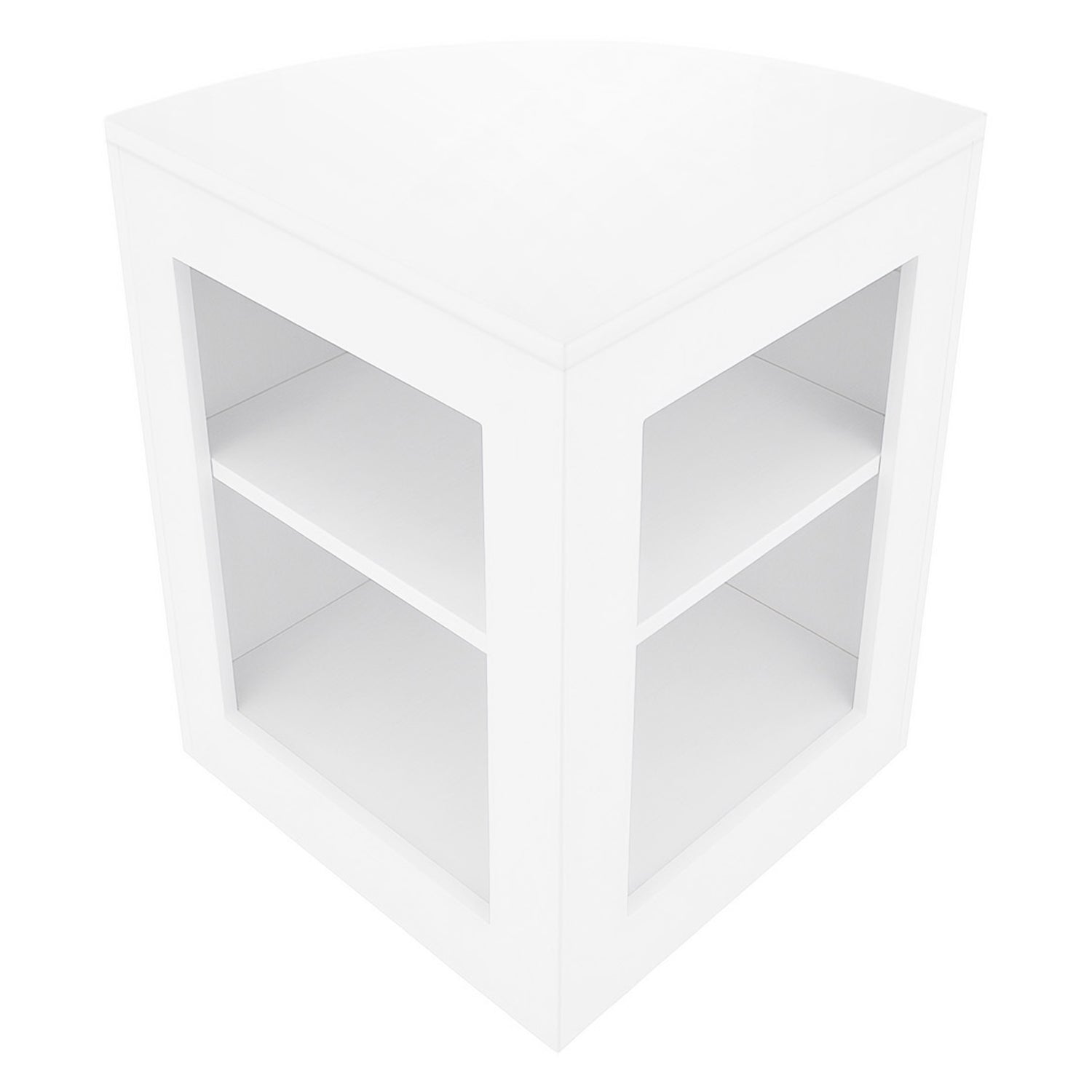 Den rundade hörndisken CM60 tillför platsbesparande funktionalitet och skapar ett smidigt flöde i butikens layout. Dess kompakta och välvda design integreras enkelt i hörn eller ansluts sömlöst till raka diskar, vilket skapar ett sammanhängande modulsystem. CM60 har en slät och stängd front för ett stilrent utseende, medan två dolda invändiga hyllor ger praktiskt förvaringsutrymme för lager eller tillbehör. Dessa hyllor är endast åtkomliga bakifrån när det inte finns angränsande diskar på sidorna, vilket gör CM60 till en diskret och smart förvaringslösning för att optimera hörnutrymmen utan att bryta butikens designestetik.