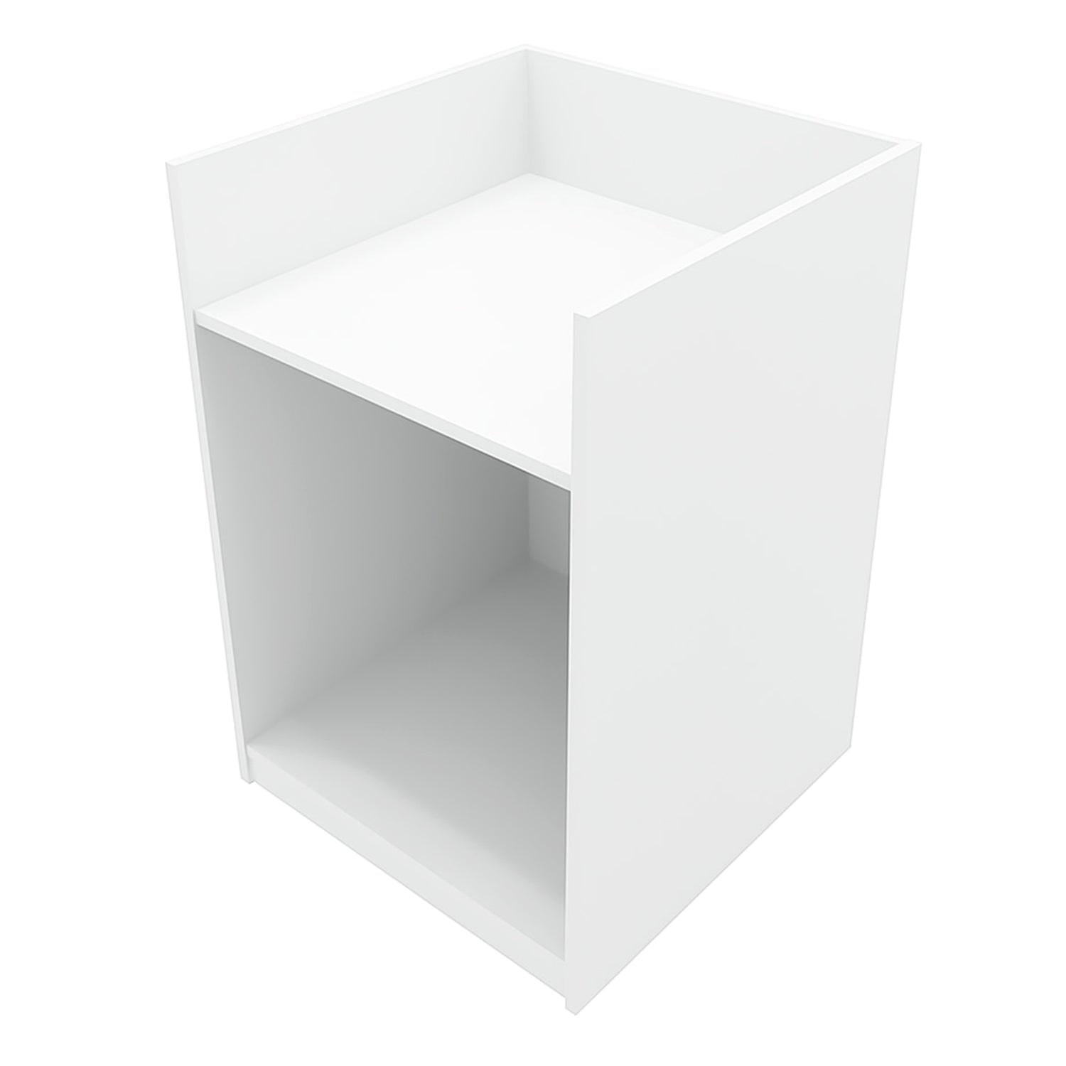 Det kurvade hörndisken CM60 erbjuder platsbesparande funktionalitet och bidrar till ett smidigt butikslayout. Med sin kompakta och rundade design passar den perfekt i hörn eller som länk mellan raka diskar, vilket skapar ett enhetligt och modulärt system. CM60 har en slät, stängd framsida som ger ett stilrent intryck, medan två dolda innerhyllor på baksidan erbjuder praktisk förvaring för lager eller tillbehör. Dessa hyllor är endast åtkomliga när enheten inte är placerad mellan andra diskar, vilket gör CM60 till en diskret och smart förvaringslösning som optimerar hörnutrymmen utan att kompromissa med estetik.