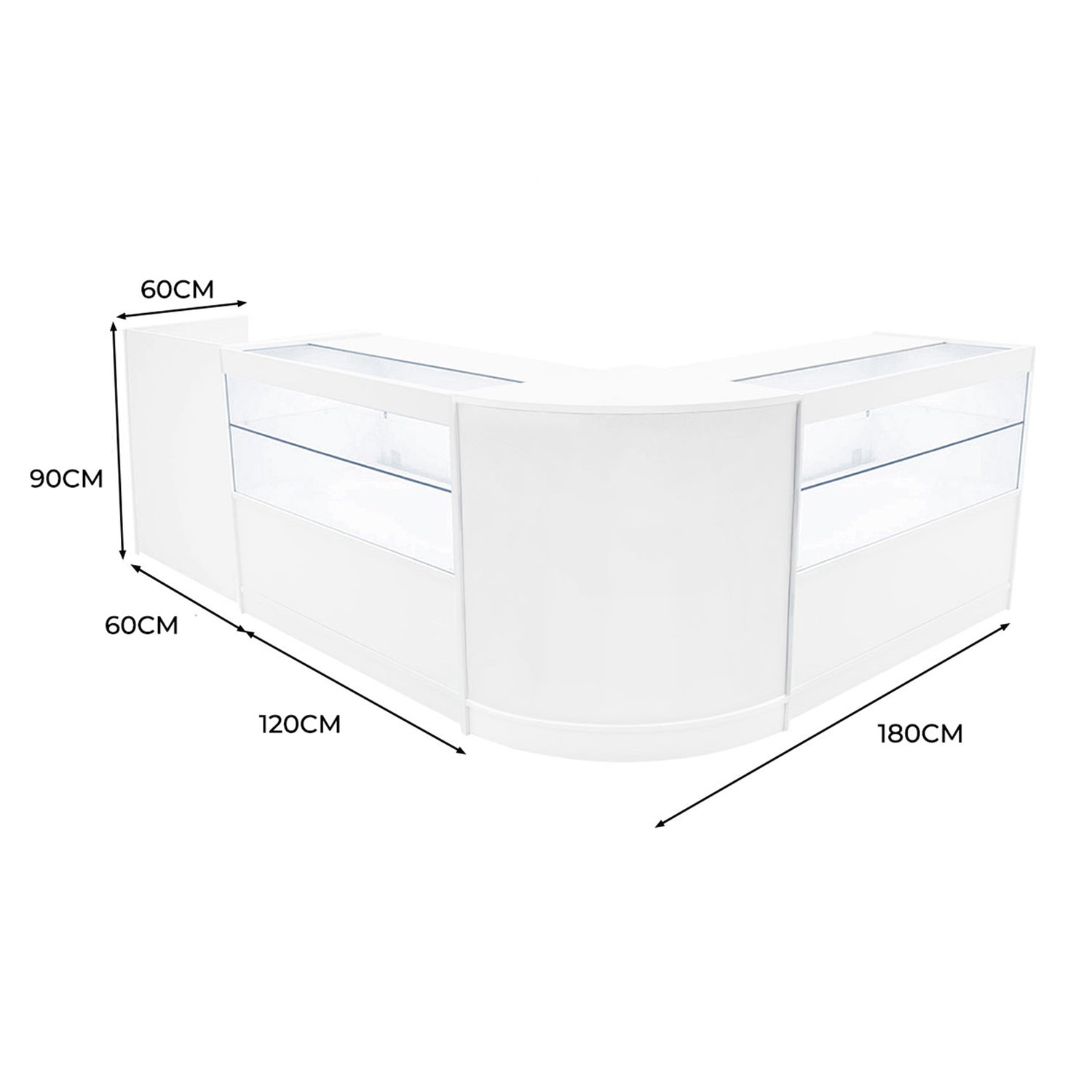 Det kurvade hörndisken CM60 erbjuder platsbesparande funktionalitet och bidrar till ett smidigt butikslayout. Med sin kompakta och rundade design passar den perfekt i hörn eller som länk mellan raka diskar, vilket skapar ett enhetligt och modulärt system. CM60 har en slät, stängd framsida som ger ett stilrent intryck, medan två dolda innerhyllor på baksidan erbjuder praktisk förvaring för lager eller tillbehör. Dessa hyllor är endast åtkomliga när enheten inte är placerad mellan andra diskar, vilket gör CM60 till en diskret och smart förvaringslösning som optimerar hörnutrymmen utan att kompromissa med estetik.