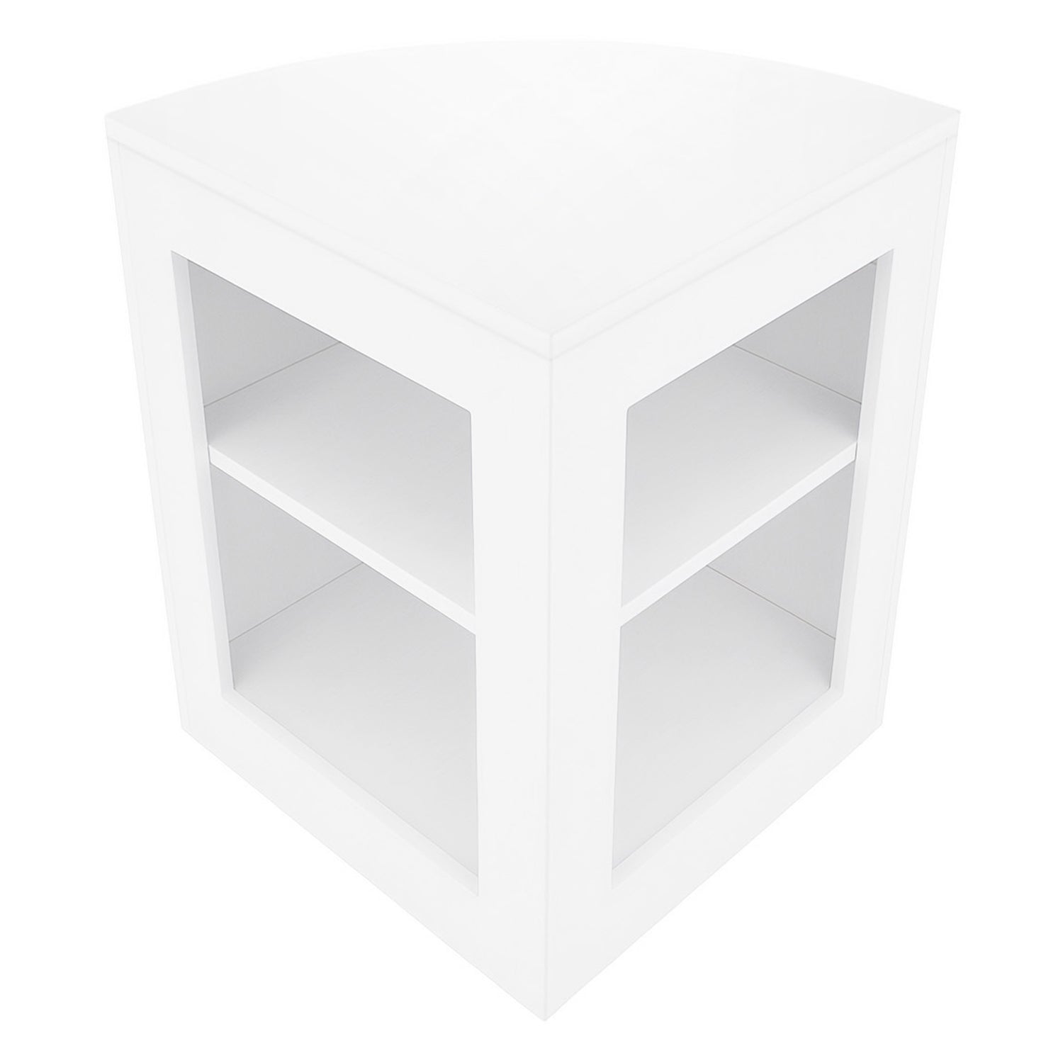 Den kurvade hörndisken CM60 tillför platsbesparande funktionalitet och en sömlös visuell flöde till din butikslayout. Dess kompakta, rundade design passar perfekt i hörn eller kan enkelt kopplas ihop med raka diskar för att skapa ett enhetligt system. CM60 har en sluten, ren framsida för ett elegant utseende, medan två dolda inre hyllor erbjuder praktisk förvaring för produkter eller tillbehör. Dessa hyllor är endast tillgängliga från baksidan när inga angränsande diskar är placerade, vilket gör CM60 till en smart och diskret förvaringslösning som optimerar hörnutrymmen utan att störa butikens design.