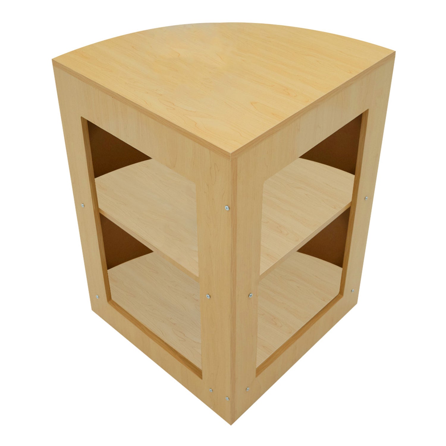 Det kurvade hörndisken CM60 erbjuder platsbesparande funktionalitet och bidrar till ett smidigt butikslayout. Med sin kompakta och rundade design passar den perfekt i hörn eller som länk mellan raka diskar, vilket skapar ett enhetligt och modulärt system. CM60 har en slät, stängd framsida som ger ett stilrent intryck, medan två dolda innerhyllor på baksidan erbjuder praktisk förvaring för lager eller tillbehör. Dessa hyllor är endast åtkomliga när enheten inte är placerad mellan andra diskar, vilket gör CM60 till en diskret och smart förvaringslösning som optimerar hörnutrymmen utan att kompromissa med estetik.