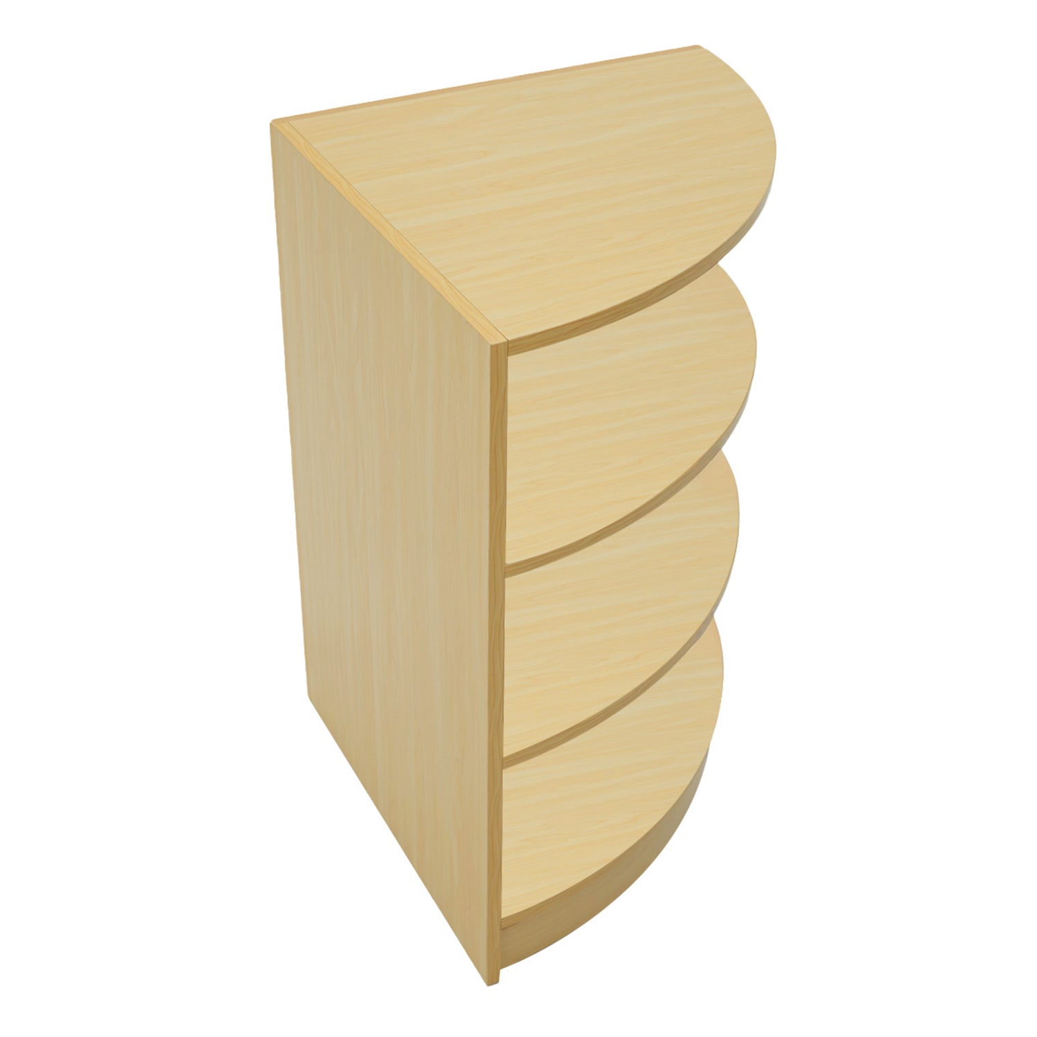 Det kurvade hörndisken CM60 erbjuder platsbesparande funktionalitet och bidrar till ett smidigt butikslayout. Med sin kompakta och rundade design passar den perfekt i hörn eller som länk mellan raka diskar, vilket skapar ett enhetligt och modulärt system. CM60 har en slät, stängd framsida som ger ett stilrent intryck, medan två dolda innerhyllor på baksidan erbjuder praktisk förvaring för lager eller tillbehör. Dessa hyllor är endast åtkomliga när enheten inte är placerad mellan andra diskar, vilket gör CM60 till en diskret och smart förvaringslösning som optimerar hörnutrymmen utan att kompromissa med estetik.