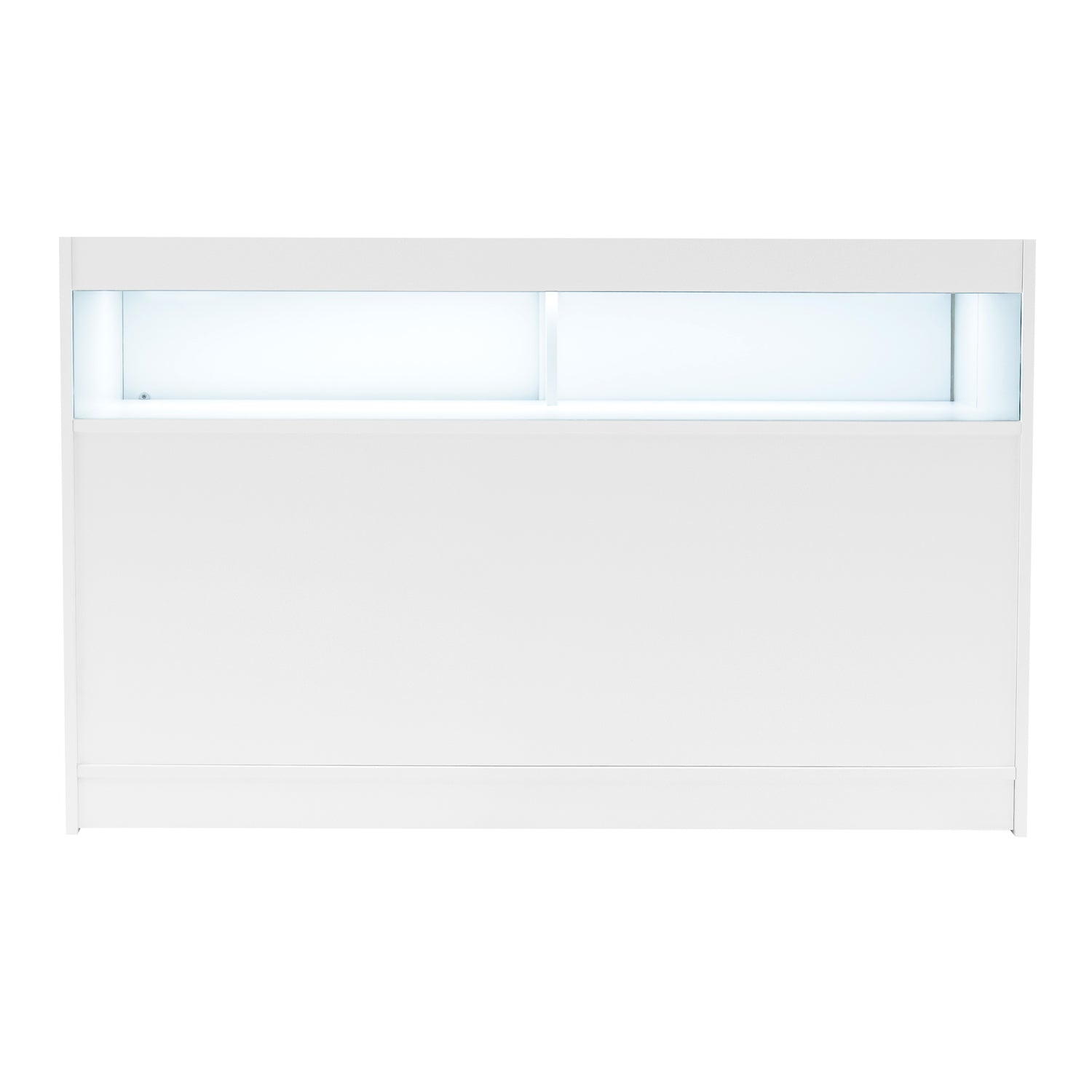 B1500 LED-disk erbjuder en modern och elegant presentationslösning som kombinerar visuellt genomslag med daglig praktikalitet. Varje enhet har klarvit LED-belysning som framhäver produkterna och säkerställer att ditt sortiment syns även i miljöer med svag belysning. Med en utställningshylla och två stängda hyllor uppnår B1500 den perfekta balansen mellan säker förvaring och produktvisning. Skjutdörrar med lås på baksidan skyddar lagret samtidigt som disken behåller ett rent och stilrent utseende mot kunden. Oavsett om det gäller smycken, accessoarer eller premiumartiklar blir B1500 en polerad och professionell fokuspunkt.