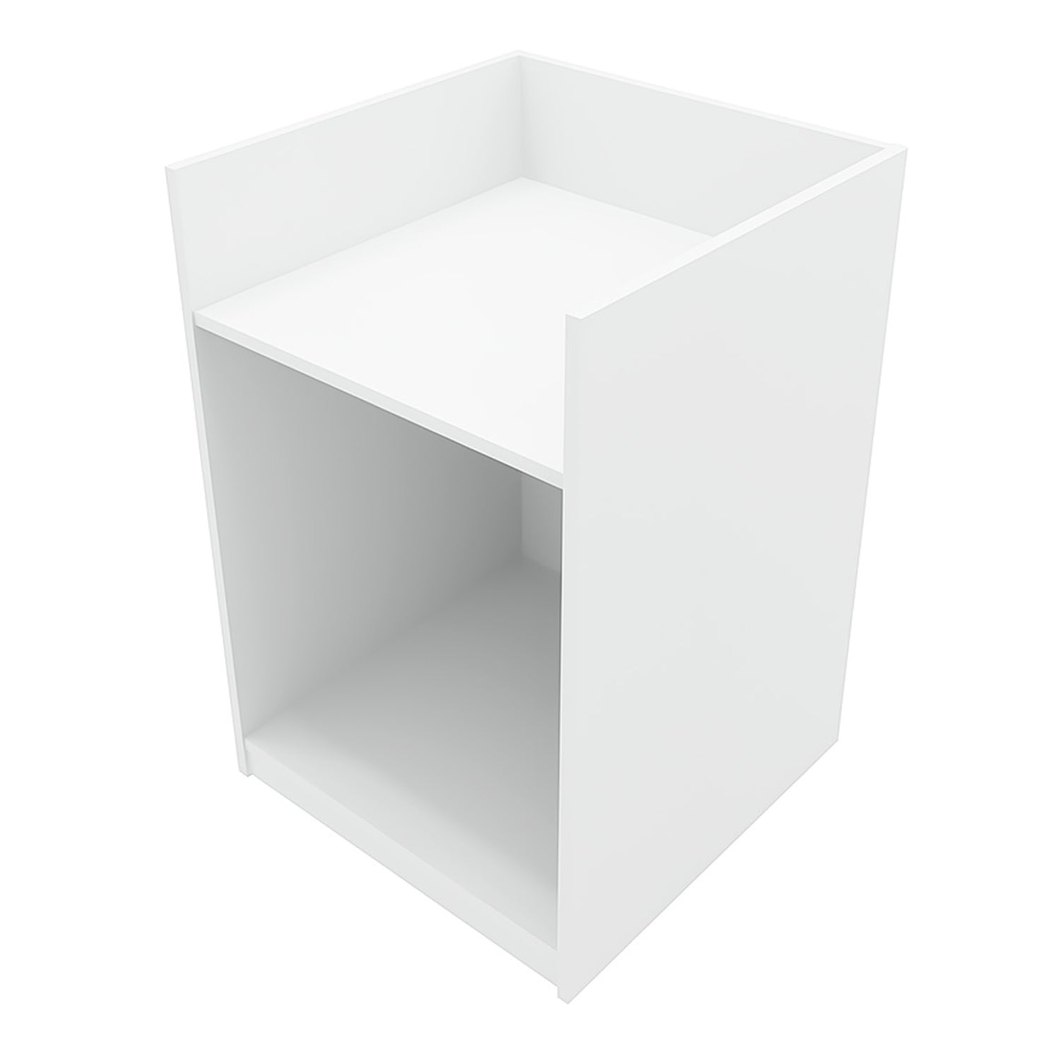 Det kurvade hörndisken CM60 erbjuder platsbesparande funktionalitet och bidrar till ett smidigt butikslayout. Med sin kompakta och rundade design passar den perfekt i hörn eller som länk mellan raka diskar, vilket skapar ett enhetligt och modulärt system. CM60 har en slät, stängd framsida som ger ett stilrent intryck, medan två dolda innerhyllor på baksidan erbjuder praktisk förvaring för lager eller tillbehör. Dessa hyllor är endast åtkomliga när enheten inte är placerad mellan andra diskar, vilket gör CM60 till en diskret och smart förvaringslösning som optimerar hörnutrymmen utan att kompromissa med estetik.