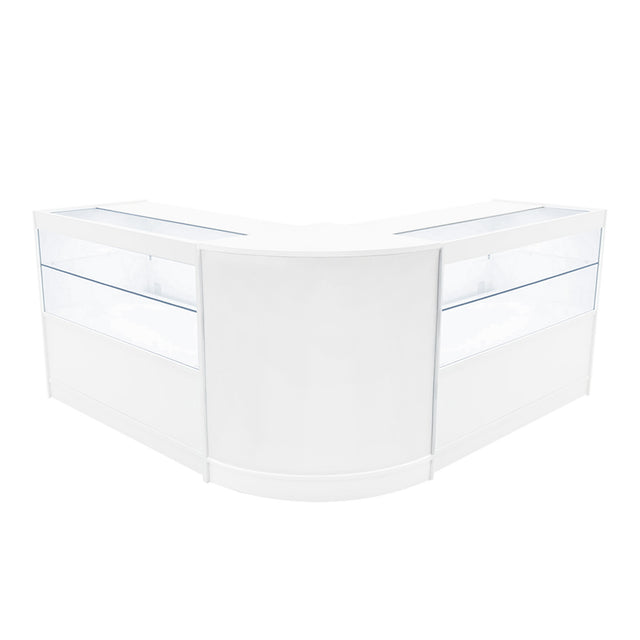 Det kurvade hörndisken CM60 erbjuder platsbesparande funktionalitet och bidrar till ett smidigt butikslayout. Med sin kompakta och rundade design passar den perfekt i hörn eller som länk mellan raka diskar, vilket skapar ett enhetligt och modulärt system. CM60 har en slät, stängd framsida som ger ett stilrent intryck, medan två dolda innerhyllor på baksidan erbjuder praktisk förvaring för lager eller tillbehör. Dessa hyllor är endast åtkomliga när enheten inte är placerad mellan andra diskar, vilket gör CM60 till en diskret och smart förvaringslösning som optimerar hörnutrymmen utan att kompromissa med estetik.