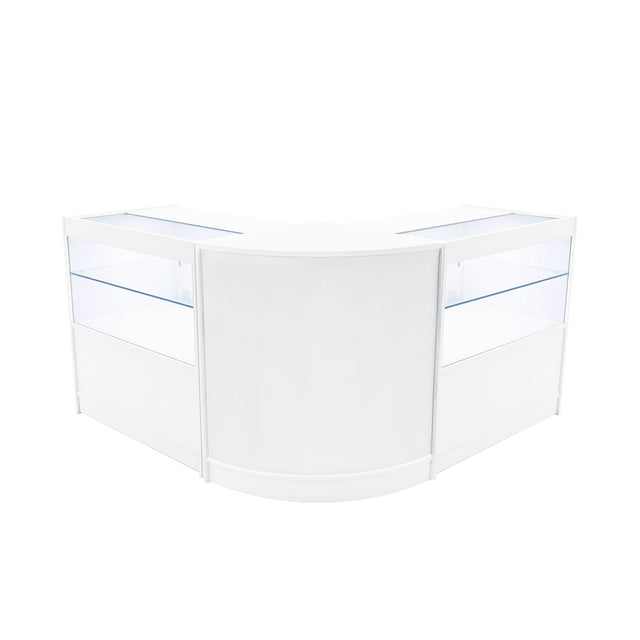 Det kurvade hörndisken CM60 erbjuder platsbesparande funktionalitet och bidrar till ett smidigt butikslayout. Med sin kompakta och rundade design passar den perfekt i hörn eller som länk mellan raka diskar, vilket skapar ett enhetligt och modulärt system. CM60 har en slät, stängd framsida som ger ett stilrent intryck, medan två dolda innerhyllor på baksidan erbjuder praktisk förvaring för lager eller tillbehör. Dessa hyllor är endast åtkomliga när enheten inte är placerad mellan andra diskar, vilket gör CM60 till en diskret och smart förvaringslösning som optimerar hörnutrymmen utan att kompromissa med estetik.