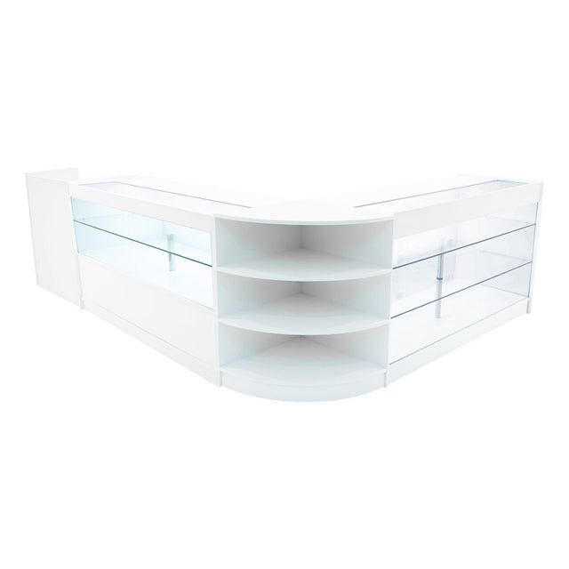 • Som ett perfekt komplement innehåller serien två typer av hörndiskar: en med öppna frontala hyllor för exponering eller snabb åtkomst, och en med sluten framsida som ger ett mer enhetligt och prydligt utseende. Matchande kassadiskar finns också tillgängliga i samma tre eleganta utföranden, vilket gör det enkelt att skapa en sammanhängande och professionell butiksmiljö.