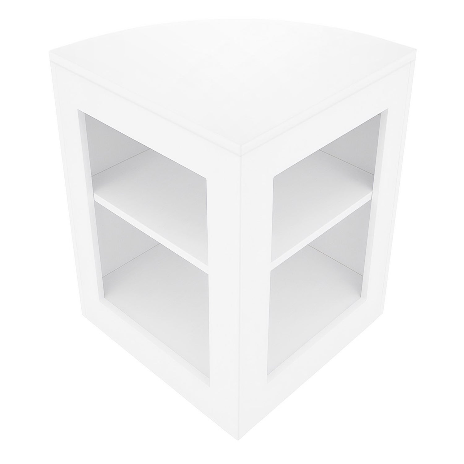 Det kurvade hörndisken CM60 erbjuder platsbesparande funktionalitet och bidrar till ett smidigt butikslayout. Med sin kompakta och rundade design passar den perfekt i hörn eller som länk mellan raka diskar, vilket skapar ett enhetligt och modulärt system. CM60 har en slät, stängd framsida som ger ett stilrent intryck, medan två dolda innerhyllor på baksidan erbjuder praktisk förvaring för lager eller tillbehör. Dessa hyllor är endast åtkomliga när enheten inte är placerad mellan andra diskar, vilket gör CM60 till en diskret och smart förvaringslösning som optimerar hörnutrymmen utan att kompromissa med estetik.