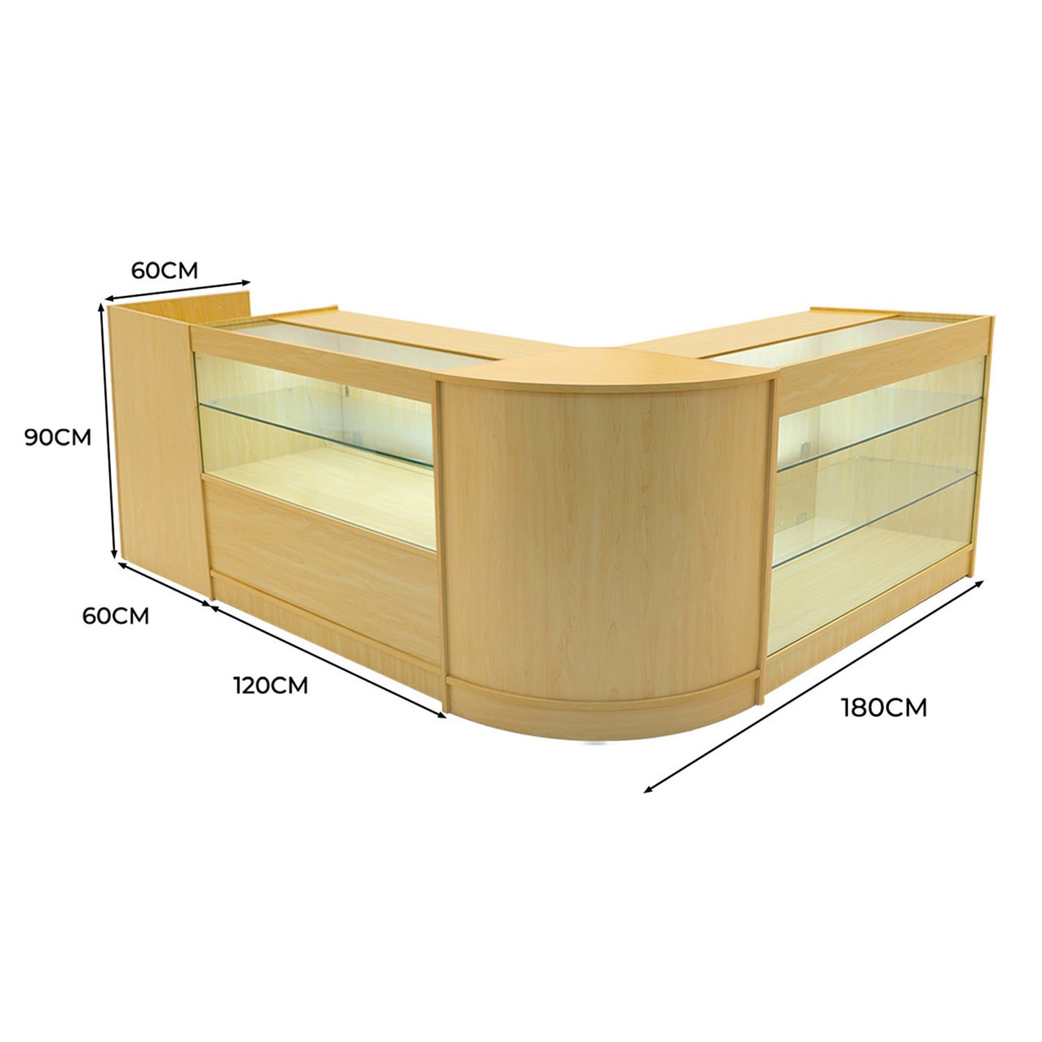 Alla diskar i denna serie är tillverkade av MDF av hög kvalitet med en slitstark Lönnfärgad melaminfinish som kombinerar hållbarhet med modern design. Modellerna K1200 och C1200 har dessutom paneler i härdat glas som ger en sofistikerad exponeringsyta och förstärker den professionella känslan. Hela serien är konstruerad för att tåla den dagliga belastningen i kommersiella miljöer med hög trafik.