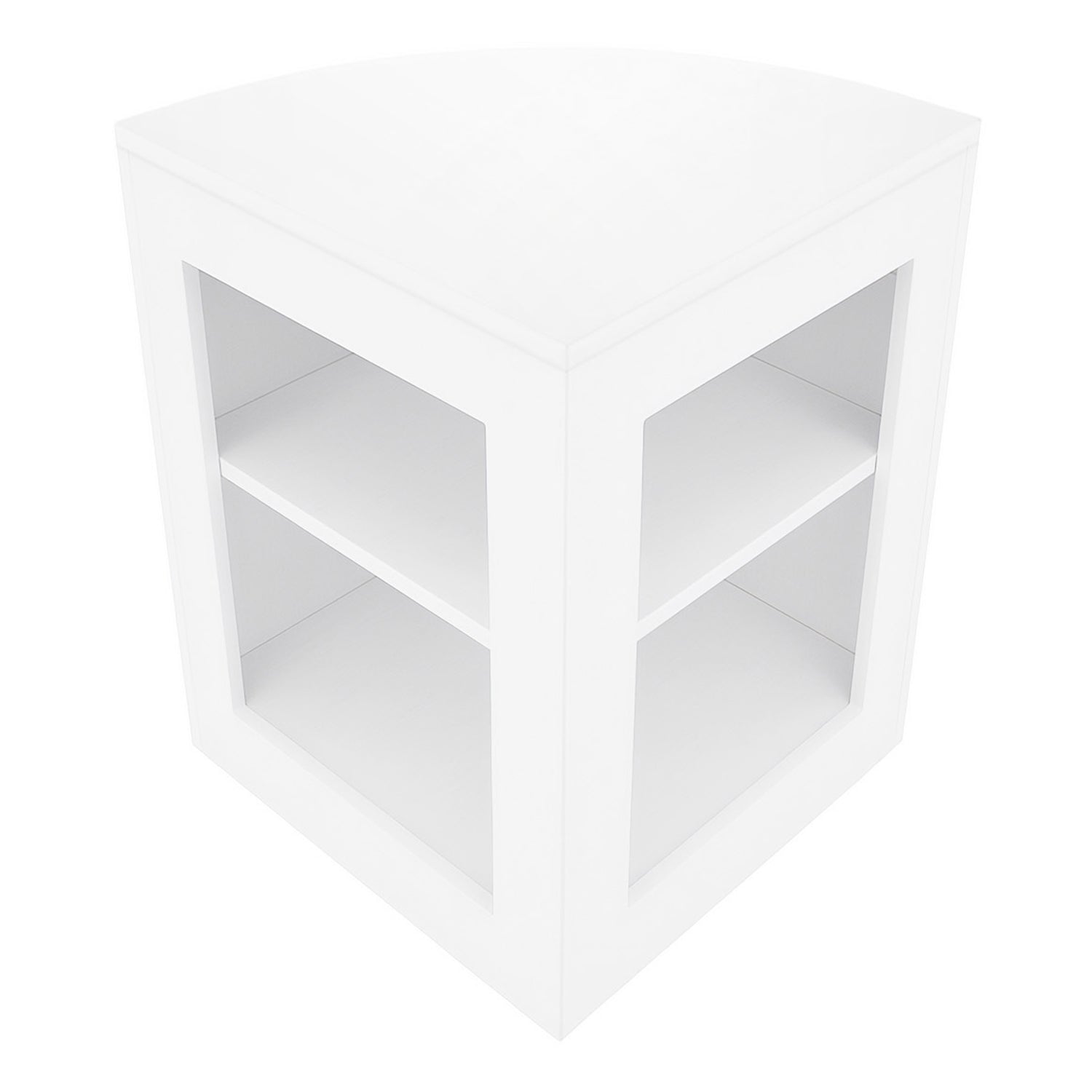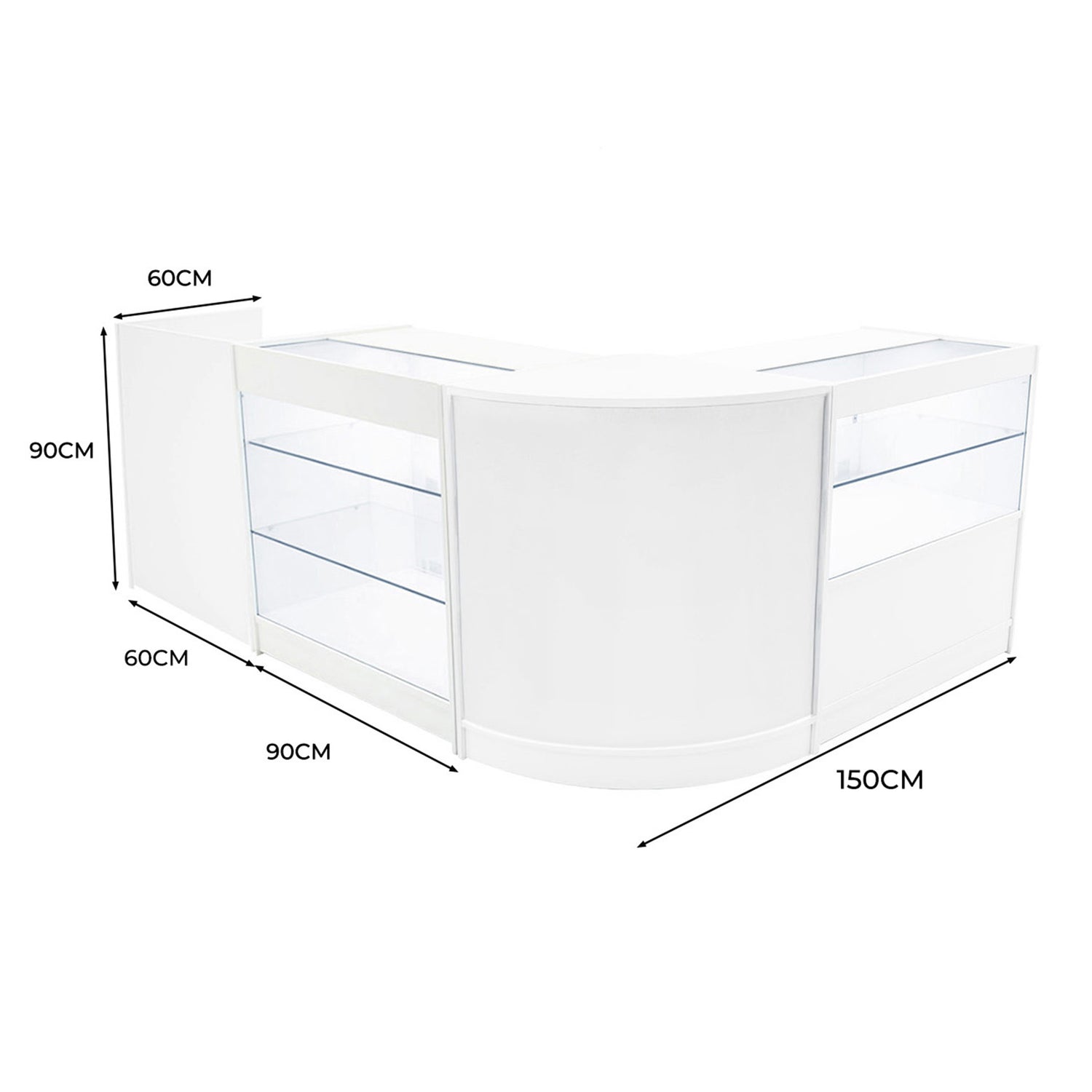 Det kurvade hörndisken CM60 erbjuder platsbesparande funktionalitet och bidrar till ett smidigt butikslayout. Med sin kompakta och rundade design passar den perfekt i hörn eller som länk mellan raka diskar, vilket skapar ett enhetligt och modulärt system. CM60 har en slät, stängd framsida som ger ett stilrent intryck, medan två dolda innerhyllor på baksidan erbjuder praktisk förvaring för lager eller tillbehör. Dessa hyllor är endast åtkomliga när enheten inte är placerad mellan andra diskar, vilket gör CM60 till en diskret och smart förvaringslösning som optimerar hörnutrymmen utan att kompromissa med estetik.