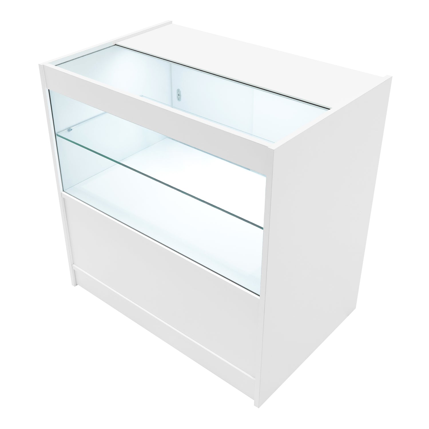Med en exponeringshylla synlig genom den främre glasrutan och två hyllor dolda från kundens synfält, balanserar dessa diskar perfekt mellan säker förvaring och effektiv presentation. De bakre skjutdörrarna med lås håller lagret säkert samtidigt som disken bibehåller ett rent och professionellt intryck utåt.