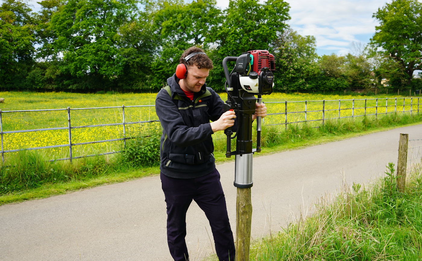 Komfort är avgörande med den ergonomiska handtagsdesignen som minimerar vibrationer och minskar användartrötthet vid långvarig användning. Den lätta konstruktionen möjliggör enkel manövrering och exakt stolpplacering. Dessutom är det lätt att starta motorn med rekylstart.