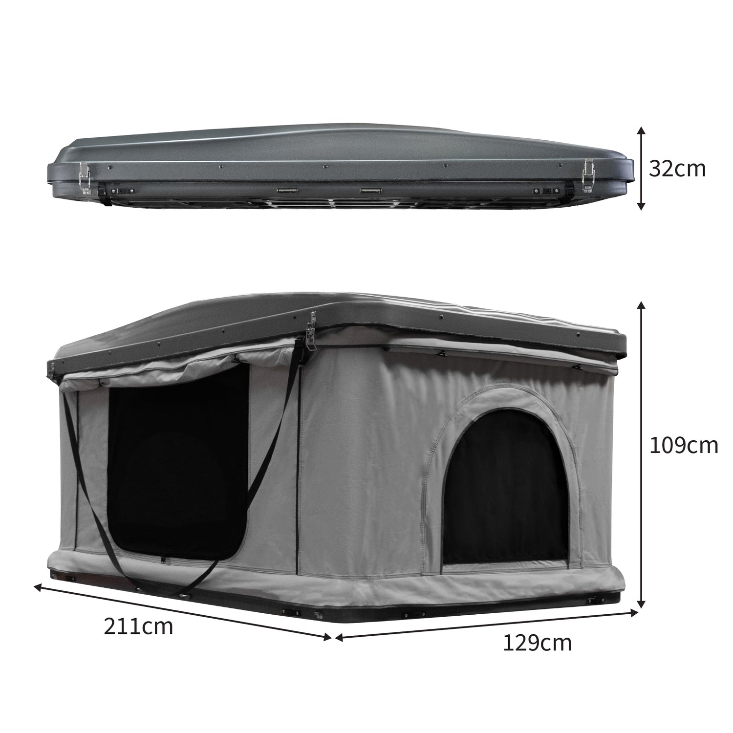 Tillverkat med högkvalitativa material kombinerar detta tält en lätt struktur med ett hållbart och styvt skal, vilket ger en perfekt balans mellan stil och funktionalitet för ditt fordon.