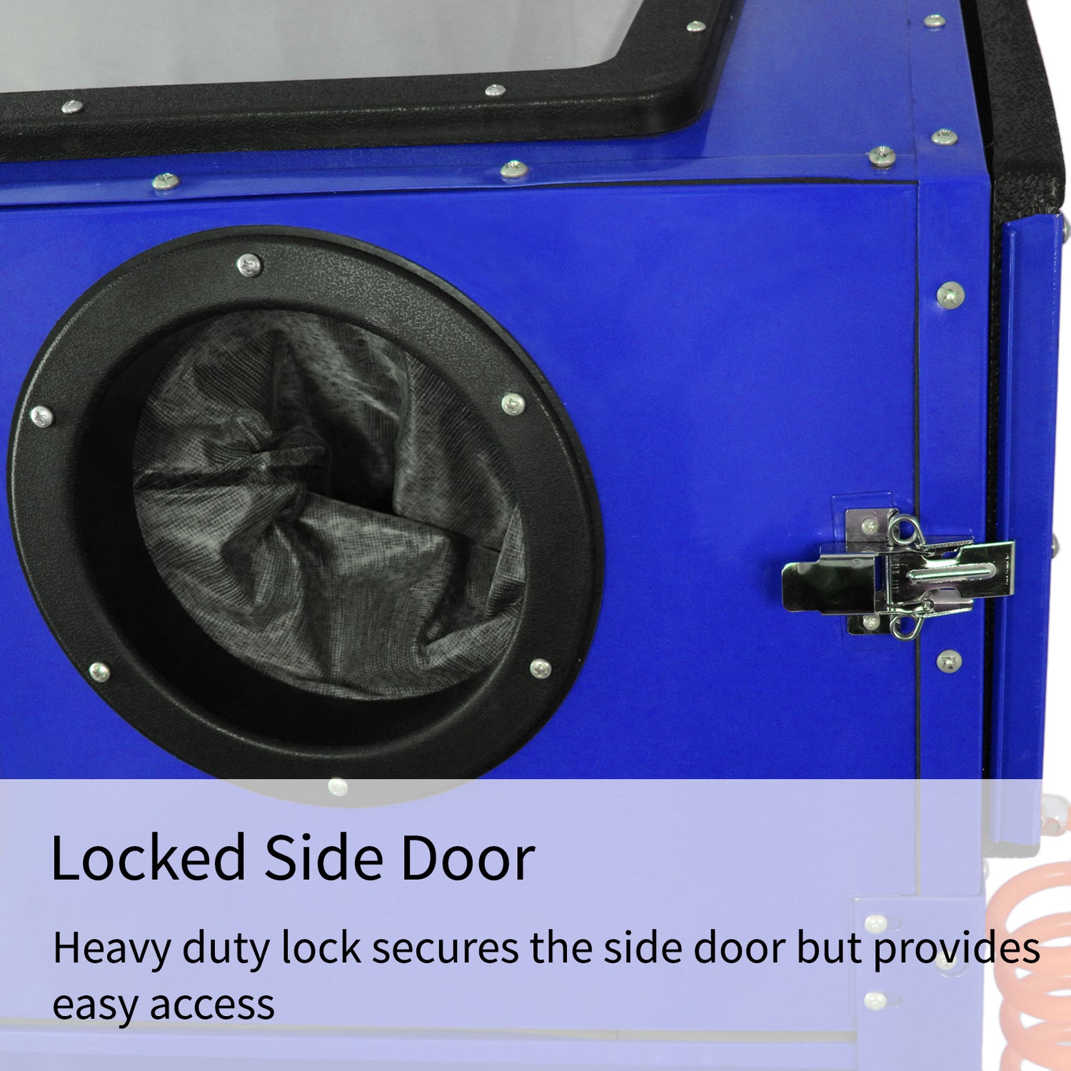 Med denna kolstålskonstruktion kan blästringen ske på säkert avstånd och håller damm borta från golv och luft. Glaspärlor kan användas för putsning och rengöring och skapar en len finish medan aluminiumoxid tar bort oönskad färg på nolltid. Vissa använder även kiselkarbid till att etsa text och design. Glöm inte att läsa på vilken typ av blästringsmedel som fungerar bäst för ditt projekt. Val av blästermedel är avgörande för att uppnå önskad effekt.