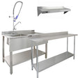 KuKoo Kommersiell Diskbänk Med Förspolningskran, 6ft Rostfritt Stål Arbetsbänk, 2 x Väggmonterade Hyllor