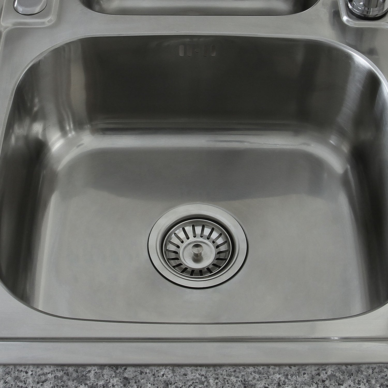 Vi inkluderar även två silproppar som silar matavfall. De behöver bara tryckas ner när du vill fylla diskhon med vatten. Dessutom tillkommer gratis vattenlås.