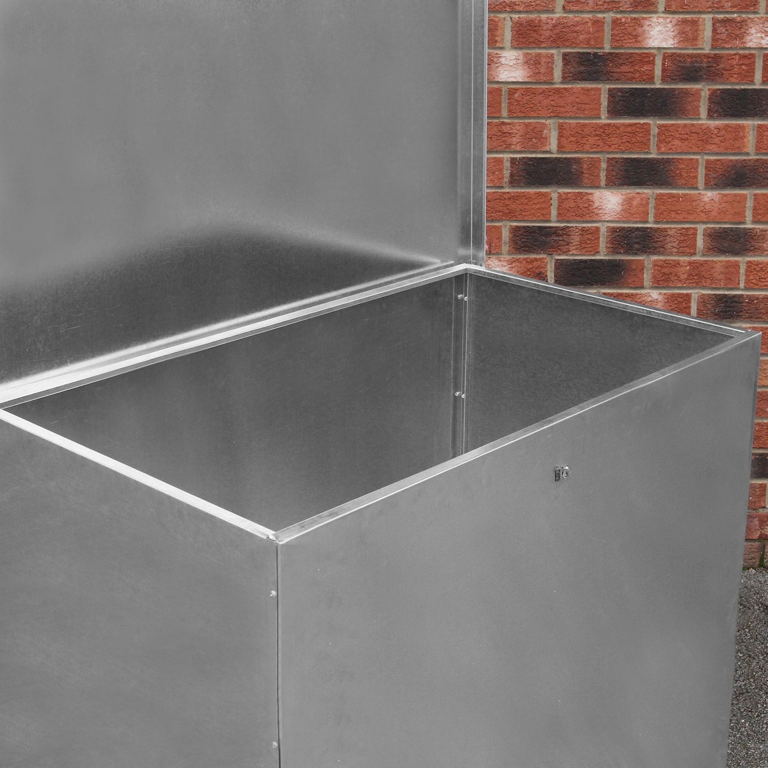 Håll djurens mat, utrustning och redskap säkra med denna låsbara, galvaniserade fodertunna med lock. Den är vattenresistent så den går utmärkt att ha utomhus. Med en volym på 64 L så rymmer den det mesta och är en bra lösning för stall och gårdar. Ett hänglås tillkommer så ni kan låsa den och hålla mat och utrustning säkra från nyfikna djur och insekter.