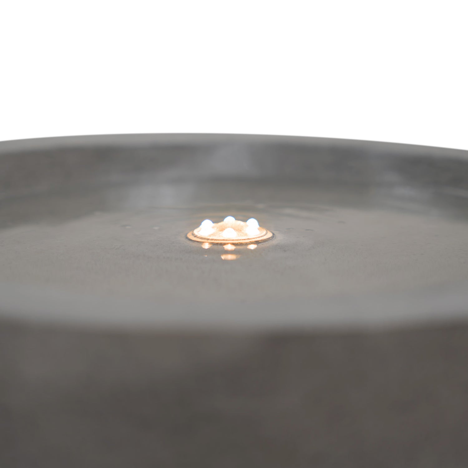 Fontänen är utrustad med två varmvita LED-lampor som mjukt lyser upp det porlande vattnet och skapar en rogivande atmosfär, särskilt när mörkret faller. Både dag och kväll sprider den ett lugnt och sofistikerat sken över dina utomhusytor.