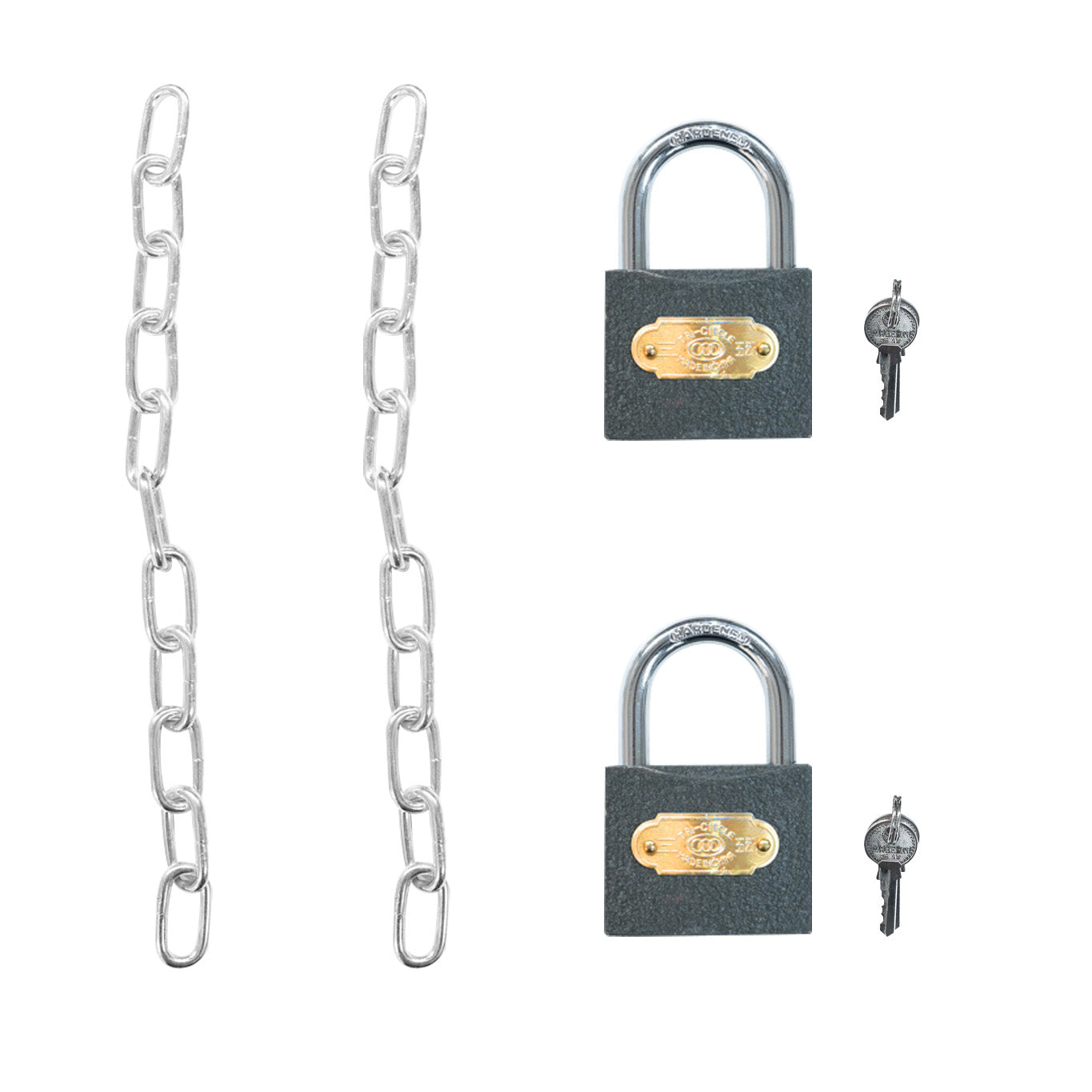 - 2 x hänglås med 4 nycklar och 2 kedjor
