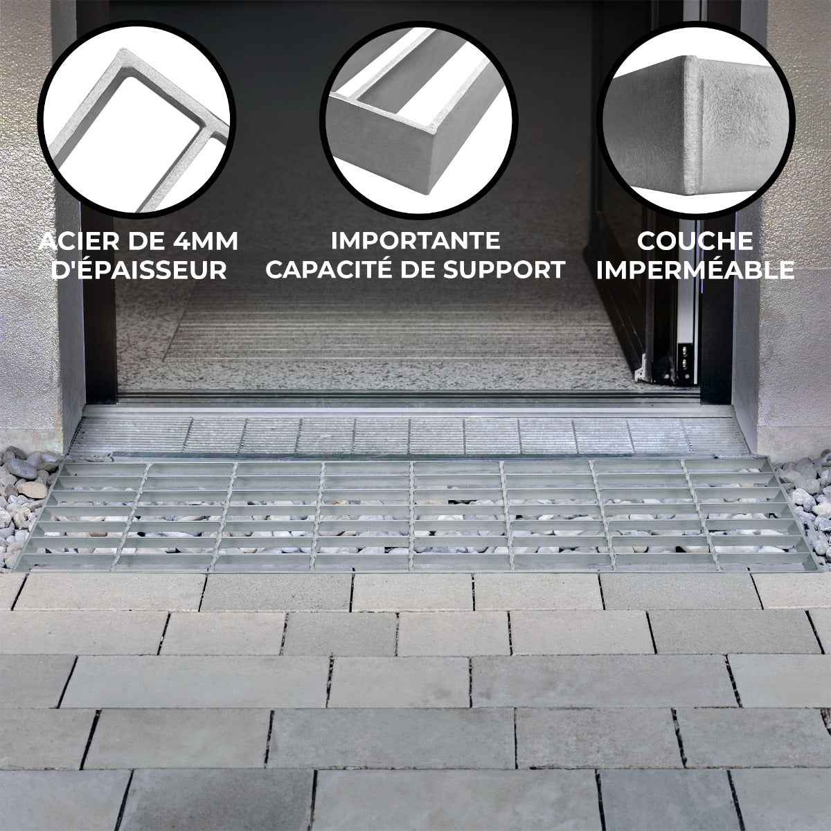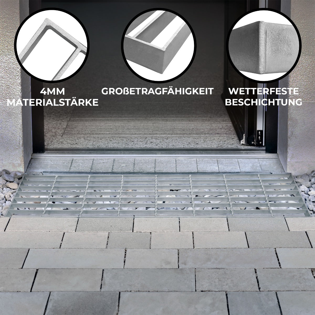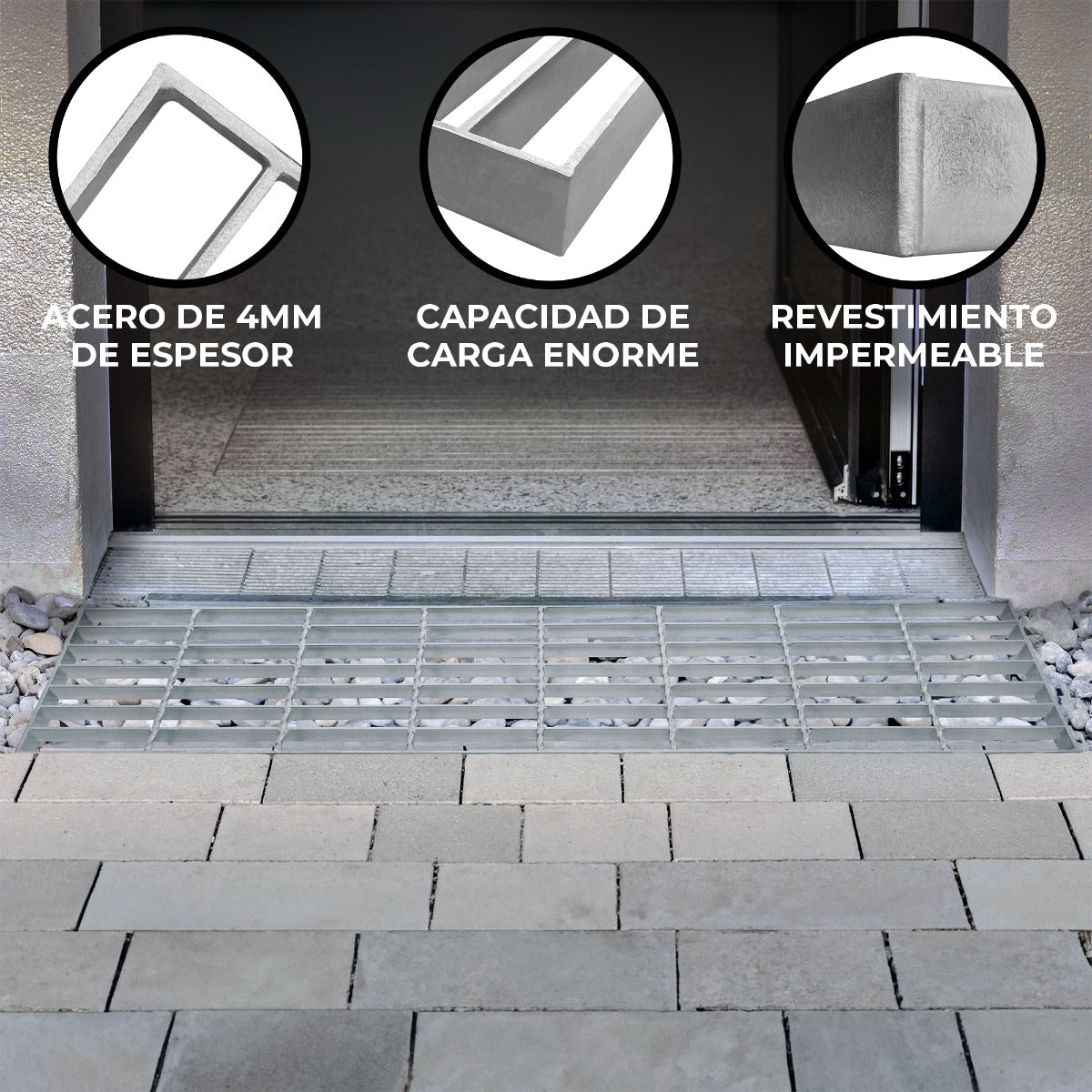 Tillverkad av högkvalitativt varmförzinkat stål erbjuder detta galler exceptionellt motstånd mot korrosion, vilket gör det lämpligt för både inomhus- och utomhusbruk. Det tål också hårda väderförhållanden, vilket garanterar pålitlig prestanda och lång livslängd. Tack vare sin 4 mm tjocka metallstruktur och imponerande belastningskapacitet på 216 kg ger denna smidda gångväg överlägsen stabilitet och hållbarhet.