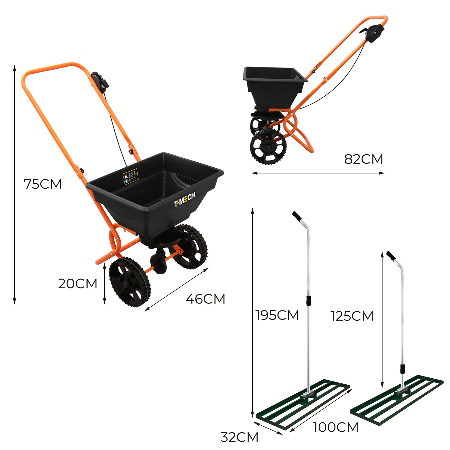 Med detta paket som innehåller en gräsutjämnare och en roterande spridare får du den ultimata duon för att skapa en perfekt jämn gräsmatta och hålla den i toppskick året runt. Från att jämna ut marken och förbereda den till att sprida gödsel, sand eller grus kombinerar detta set effektivitet, hållbarhet och enkel användning för alla dina behov av gräsmattevård.