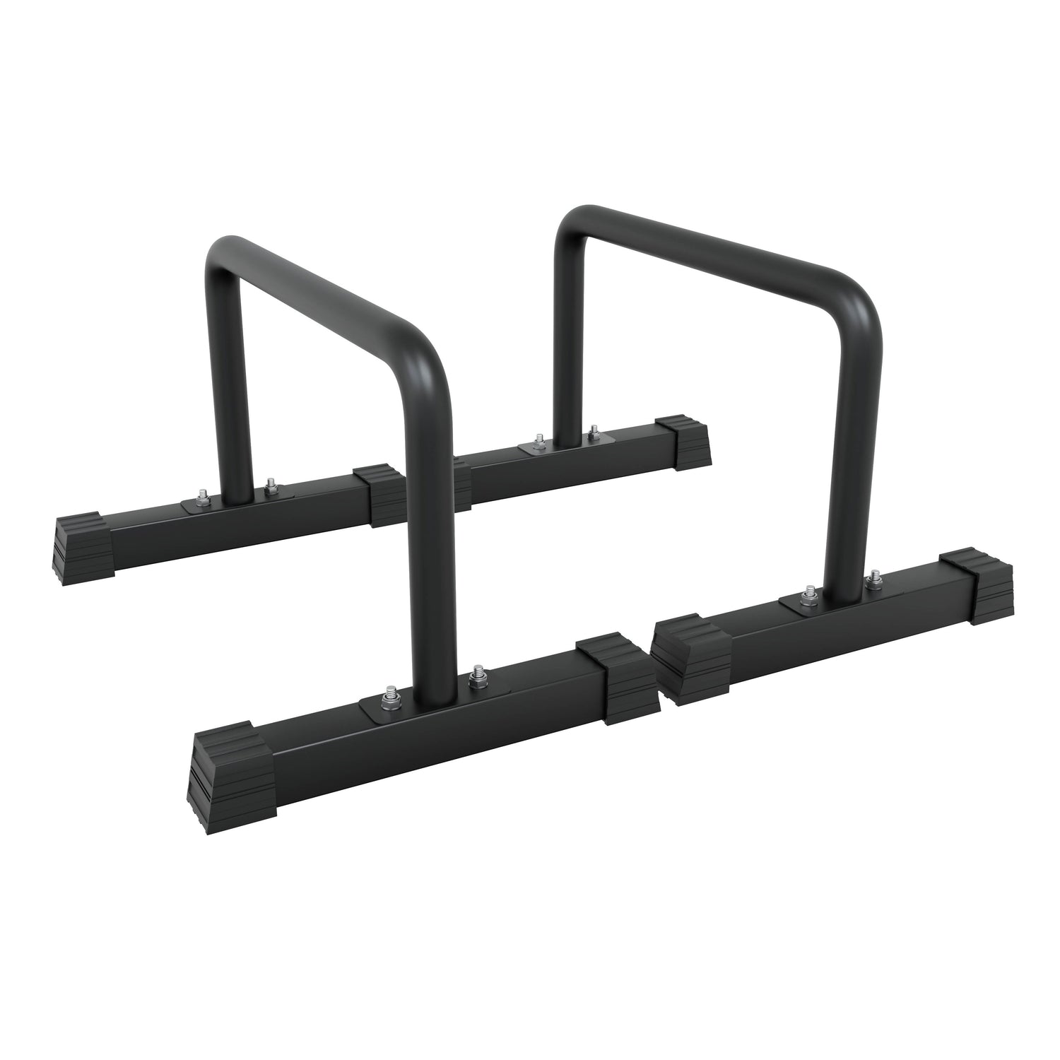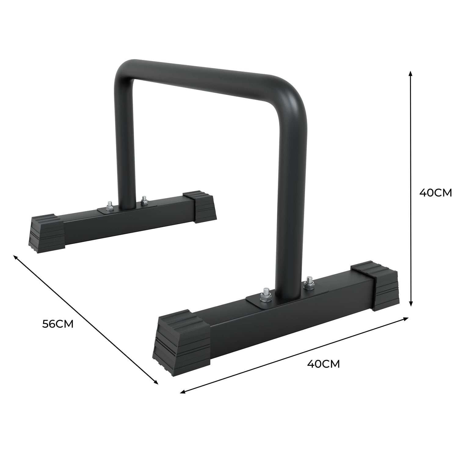 Parallette armhävningsstänger är konstruerade med lätt, robust stål för en säkrare träning, vilket gör att du kan fokusera på form, styrka och balans. Stängerna har också halkfria fötter för ökad sinnesro.