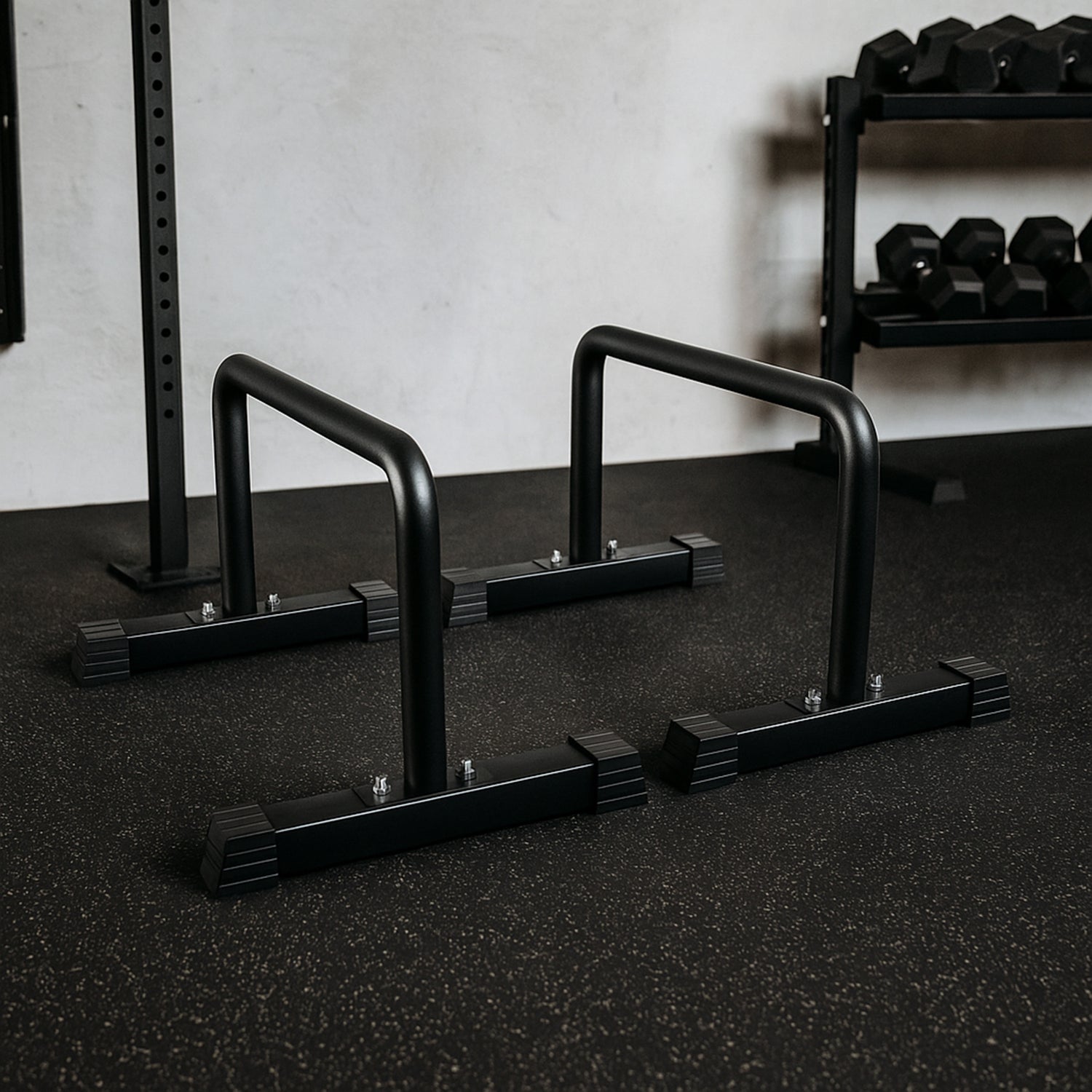 Parallettes Bars använder kroppsvikt som ett verktyg för helkroppsrörelse och funktionell fitness – parallellstänger är designade för calisthenics träning och övningar, med fokus på kärnstyrka & stabilitet och helkroppsrörelser, vilket främjar bättre hållning och förbättrad funktionell fitness.