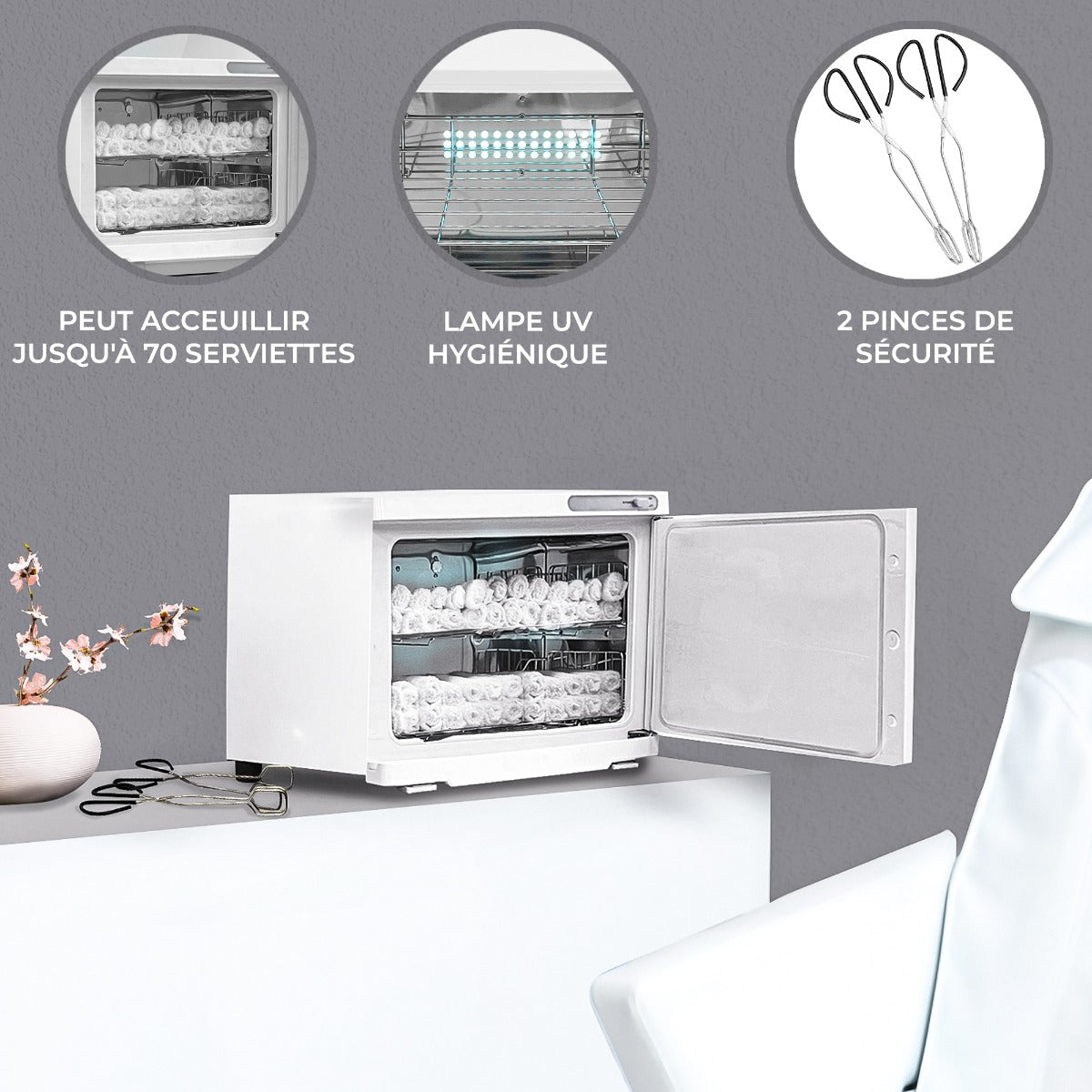 Skäm bort dina kunder med lyxigt varma handdukar som också uppfyller hygienkraven för din skönhetssalong med dessa kraftfulla handduksvärmare och deras smarta UV-sterilisering.