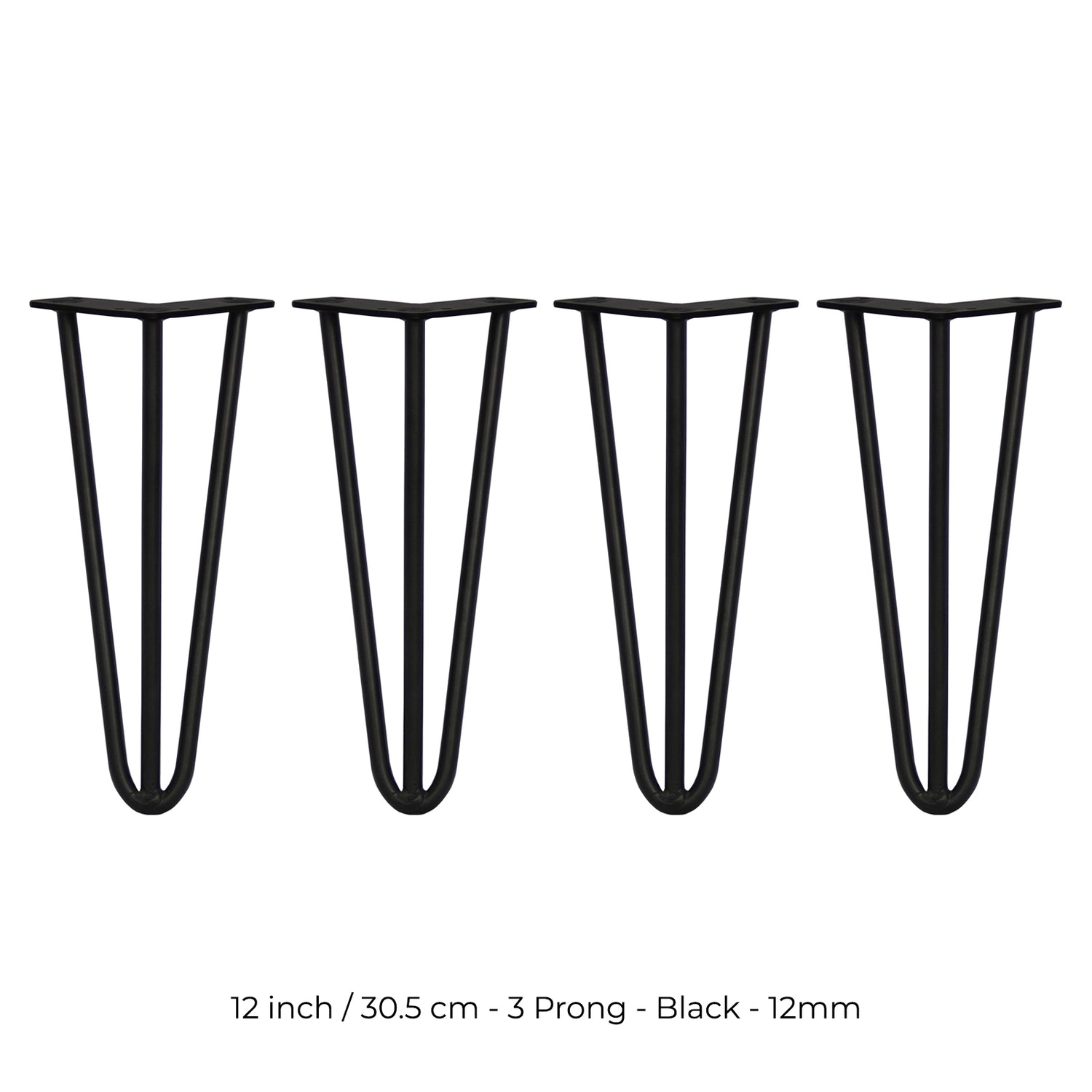 4 x 30 cm Hårnålsben - 3 Stänger - 12 mm - Svart