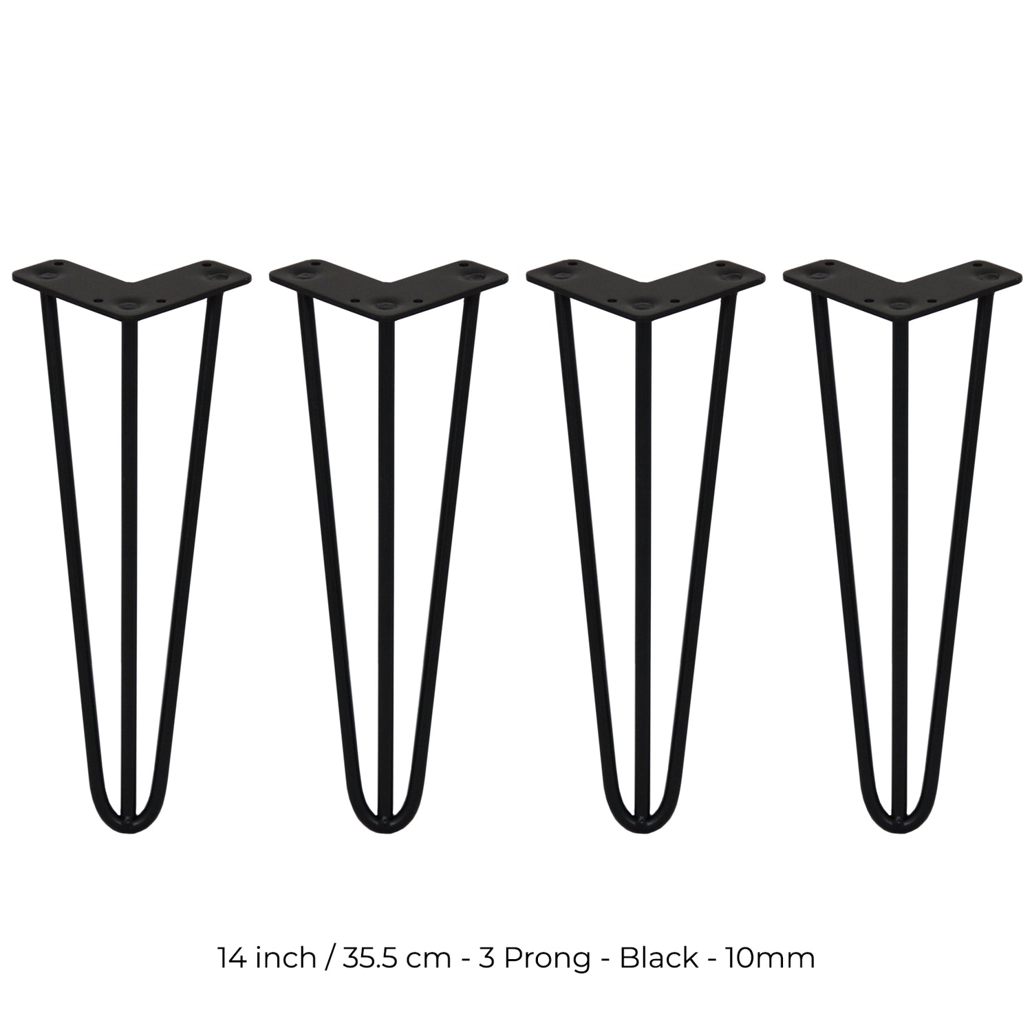4 x 35 cm Hårnålsben - 3 Stänger - 10 mm - Svart