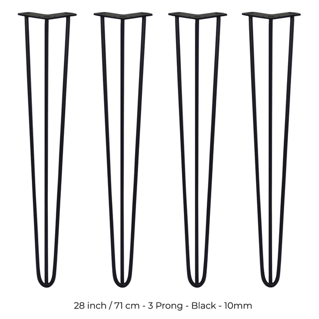 4 x 71 cm Hårnålsben - 3 Stänger - 10 mm - Svart