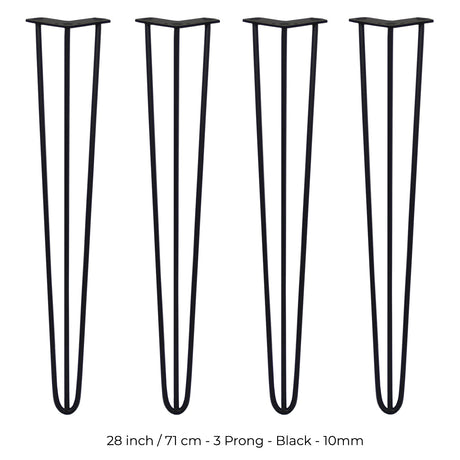 4 x 71 cm Hårnålsben - 3 Stänger - 12 mm - Svart