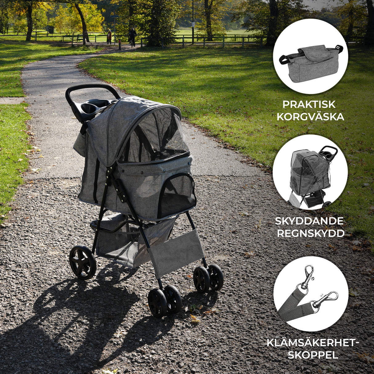 Hundvagn med Regnskydd och Caddy-väska – Vävd grå