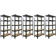 5 x T-RAX Svarta Hyllenheter i Metall 75cm x 150cm x 30cm