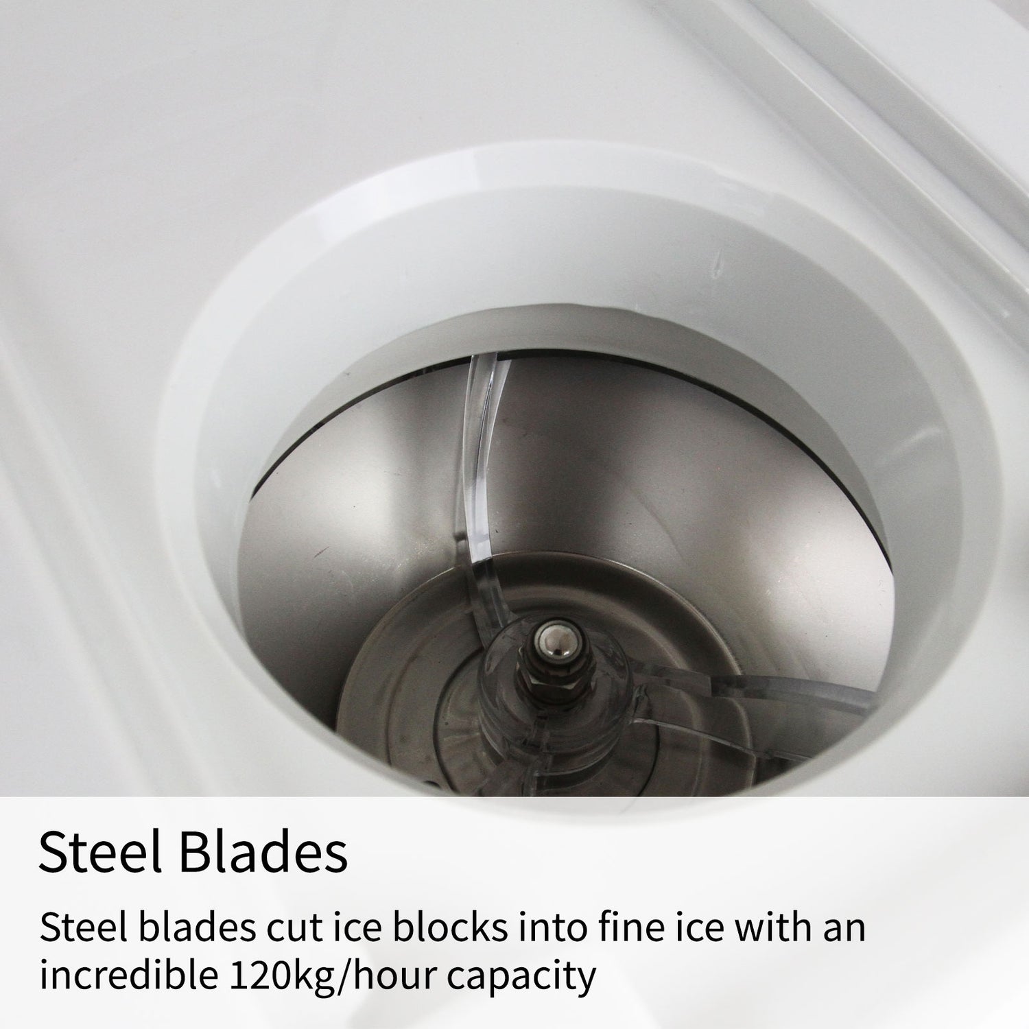 Med en otrolig kapacitet på 120 kg /timme kommer denna ismaskin se till att du aldrig ligger efter. Upplev känslan av kontroll genom att justera finheten på isen eller använd den omvända funktionen för att slipa ner större isbitar.