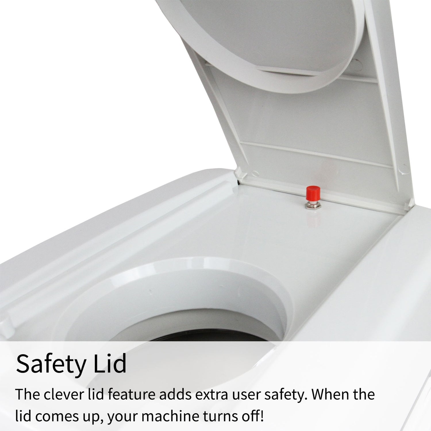 Ismaskingens låga design garanterar stabilitet medan lockets säkerhetsfunktion ger maximal säkerhet för användaren. Underhållet och städningen görs superenkel med hjälp av tråget som fångar upp överflödigt vatten. Ge ditt kök det lilla extra med KuKoos ismaskin nu!