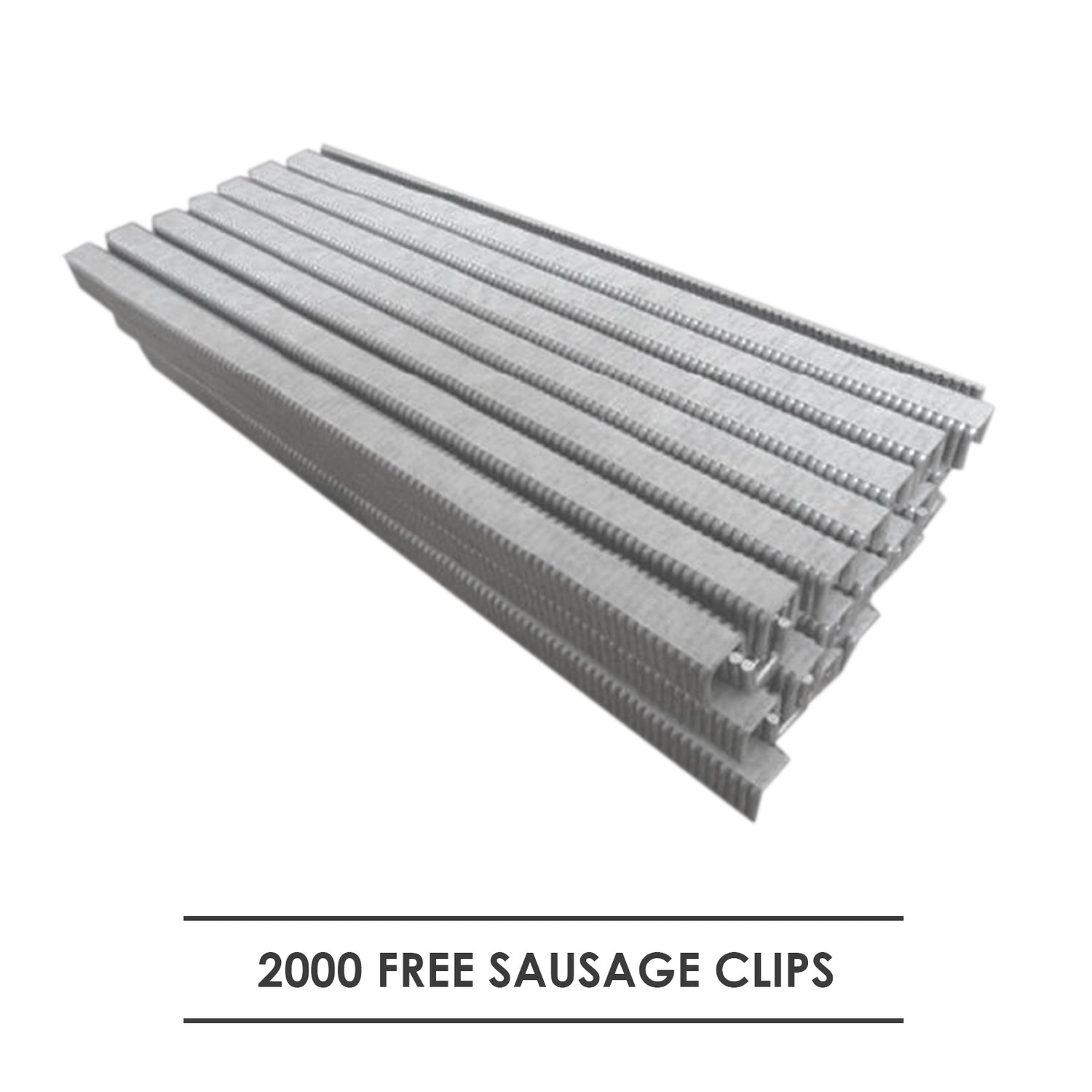 När du investerar i denna korvklipper får du inte bara ett pålitligt verktyg, utan också en generös tillförsel av nödvändiga tillbehör. Denna korvklipper levereras med en generös tillförsel av 2000 aluminiumklips. Dessa klips är speciellt utformade för att säkert försluta dina korvar och förhindra läckage eller oönskad röra. Med en så pass stor mängd klips inkluderade kan du producera många korvar innan du behöver fylla på.