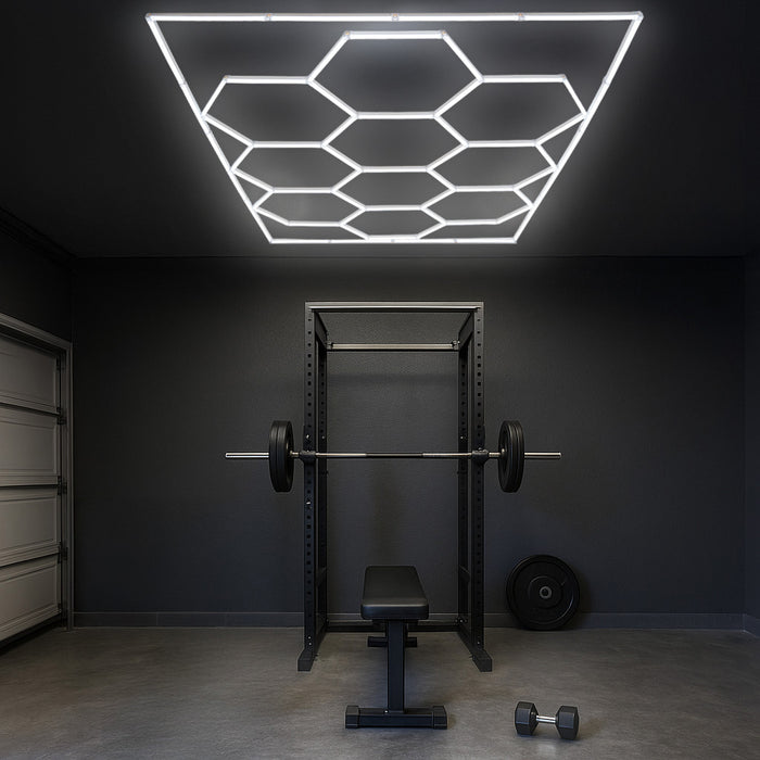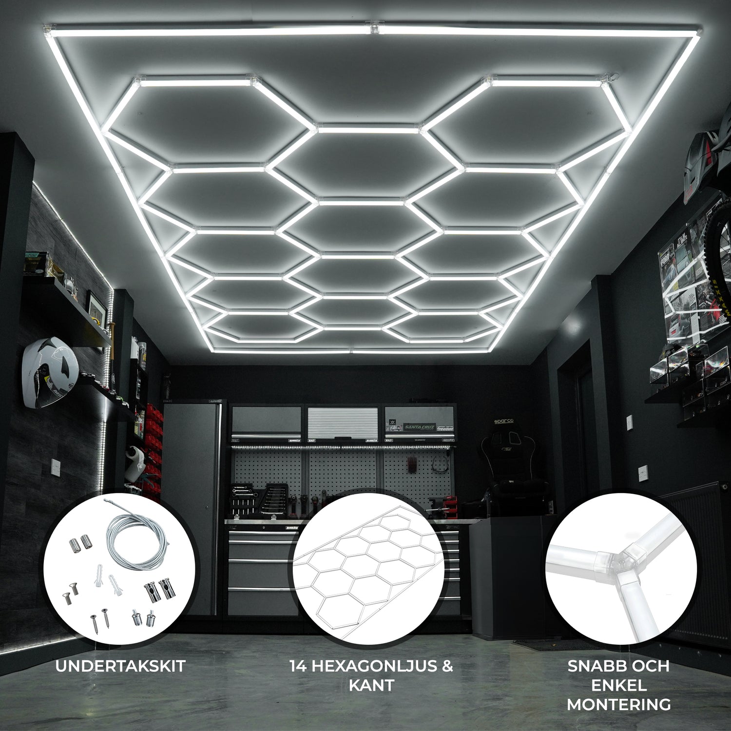 Förvandla ditt utrymme med vår innovativa hexagon LED-belysning, den perfekta lösningen för garage, gym, verkstäder och mer.