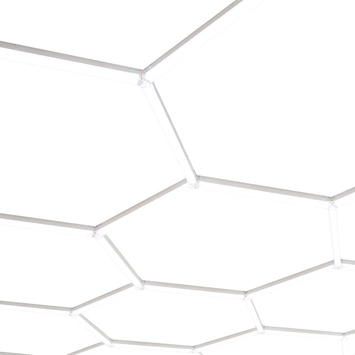 Dessa 14 hexagon-formade LED-lampor och kant skapar inte bara en fantastisk visuell effekt, utan förser även ljusstark, vit belysning som förbättrar en vid bredd av miljöer. Med en färgtemperatur på 6500K och 120 lumen per panel, ger vår hexagonbelysning optimal ljusstyrka, vilket gör den perfekt för detaljerade uppgifter i verkstäder eller för att skapa en välkomnande atmosfär i salonger.