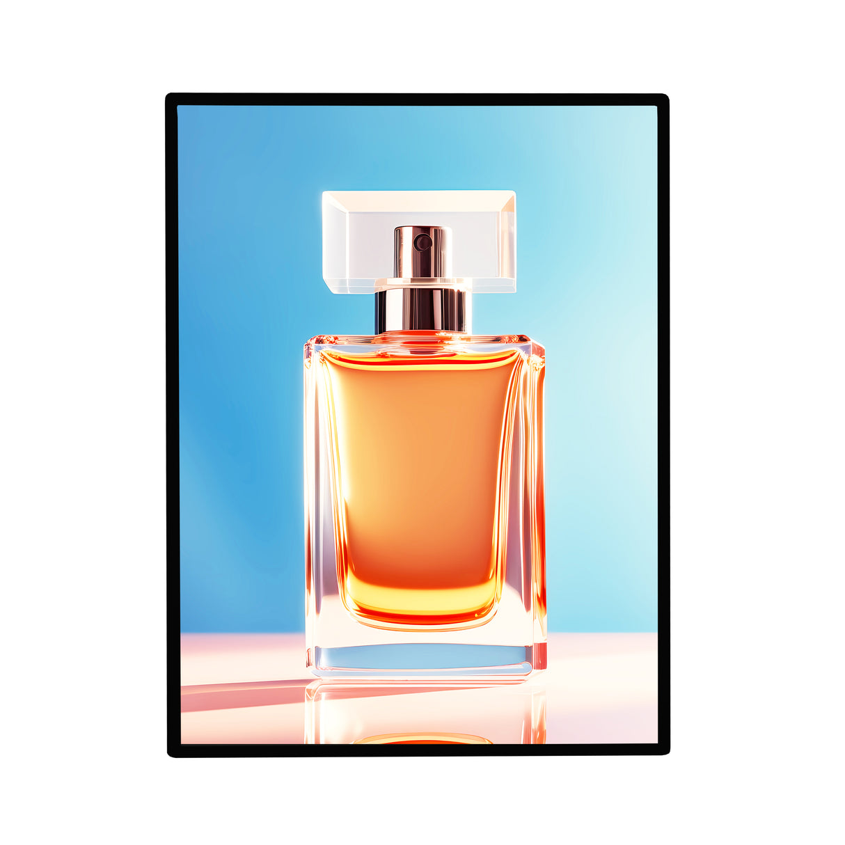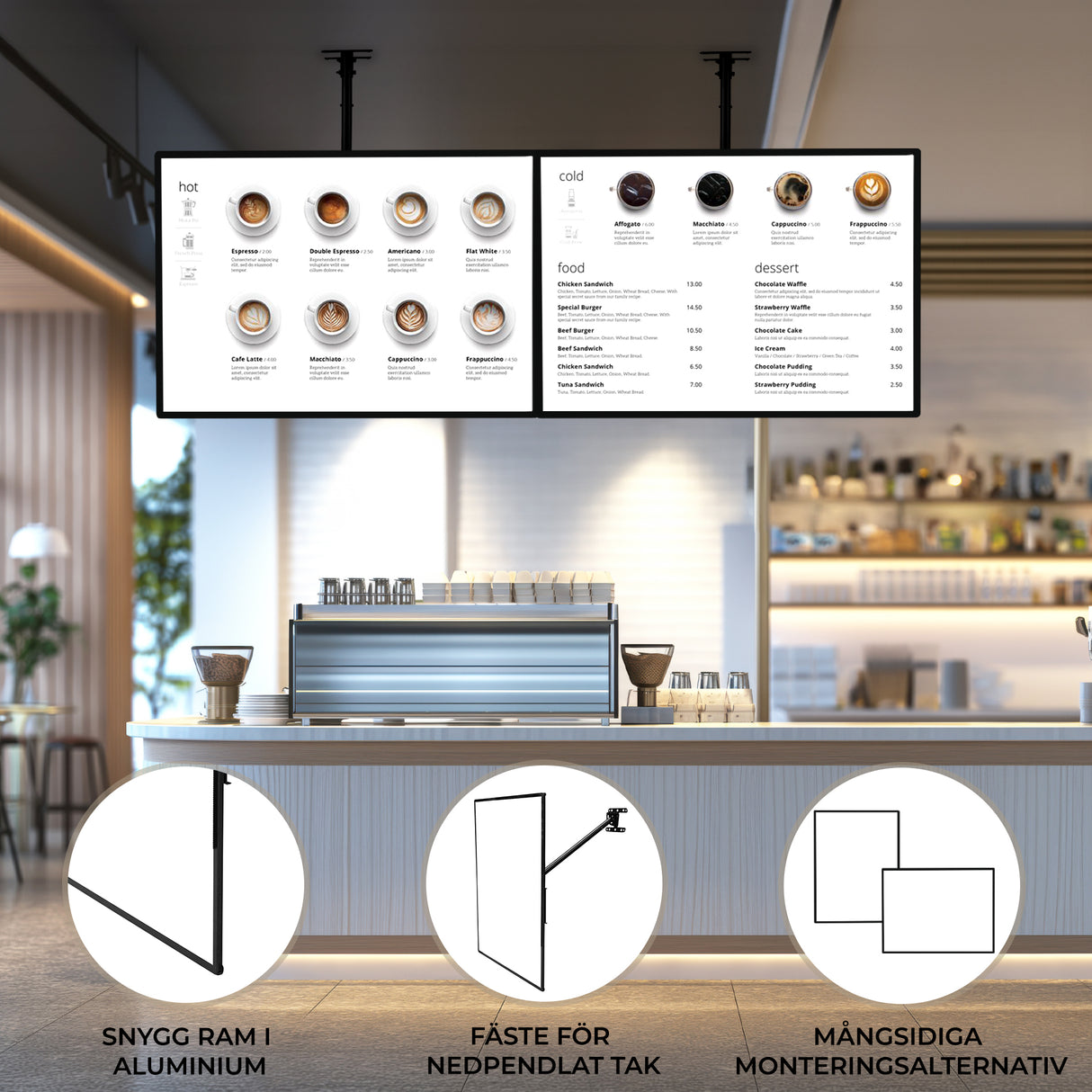 Tillverkade med en stilren svart aluminiumlegeringsram och en härdad glasskiva, utstrålar dessa displayer hållbarhet och elegans. Den rektangulära ramen är ultratunn och passar sömlöst in i alla miljöer.